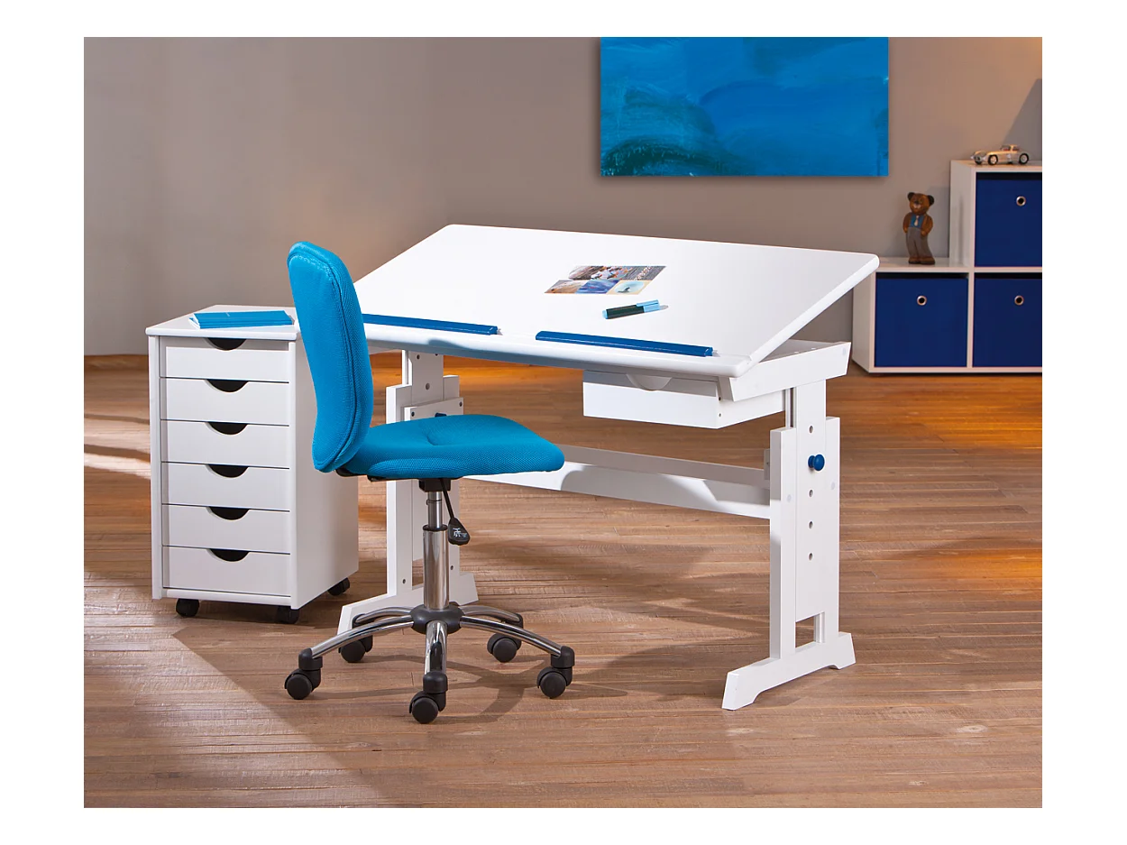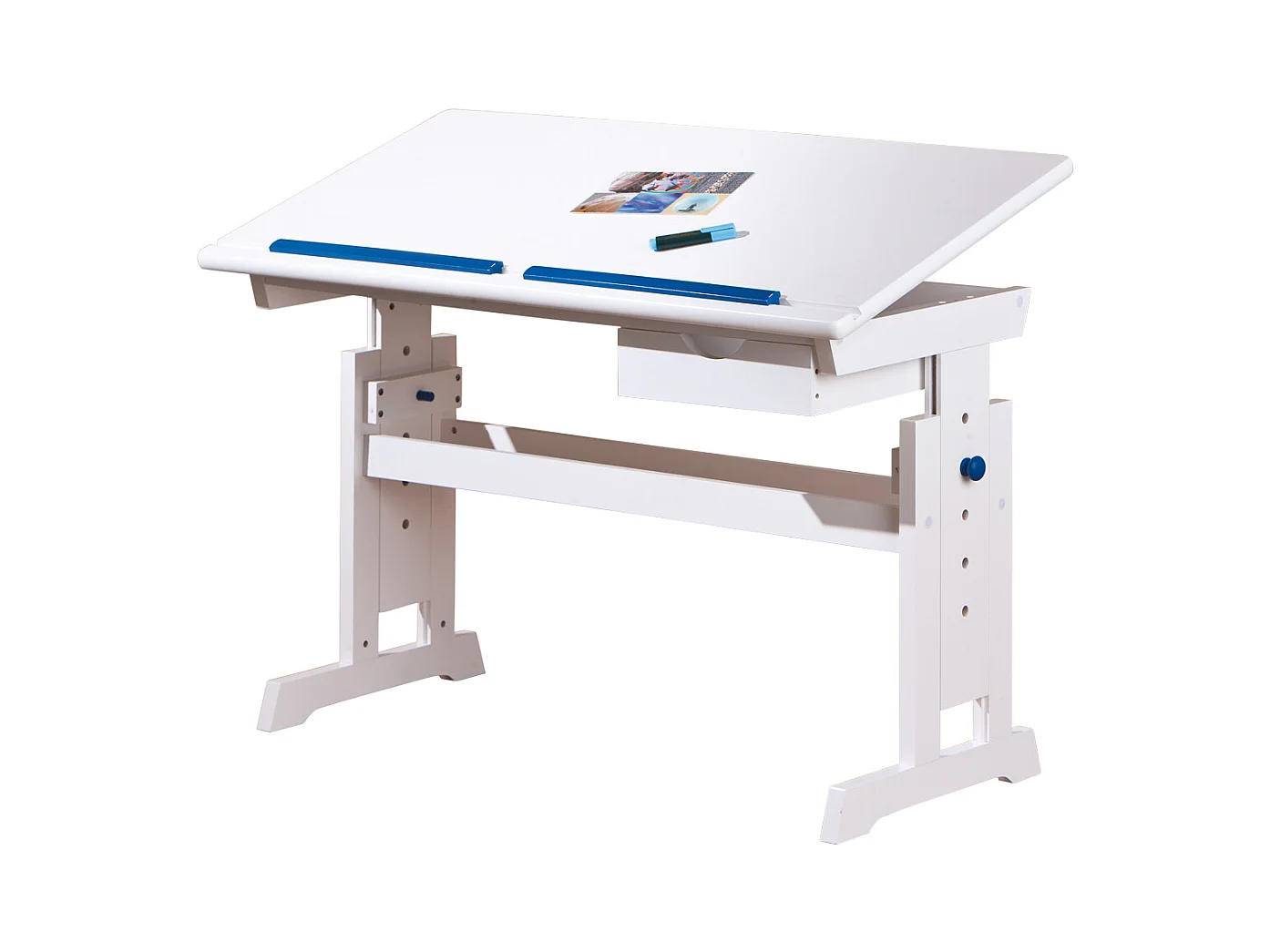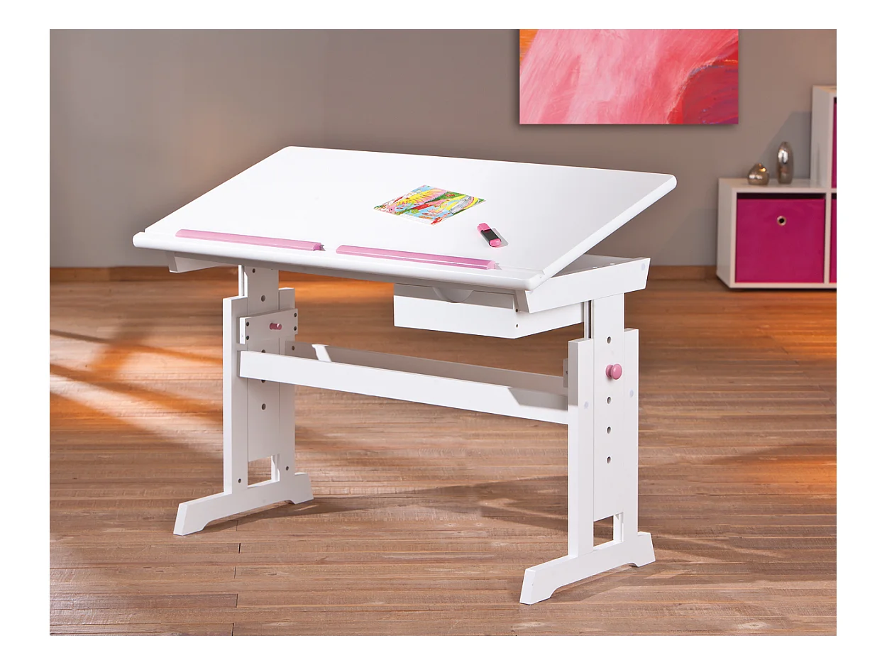Batur Schreibtisch 1 Schublade weiss,blau/ pink.