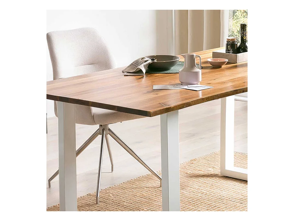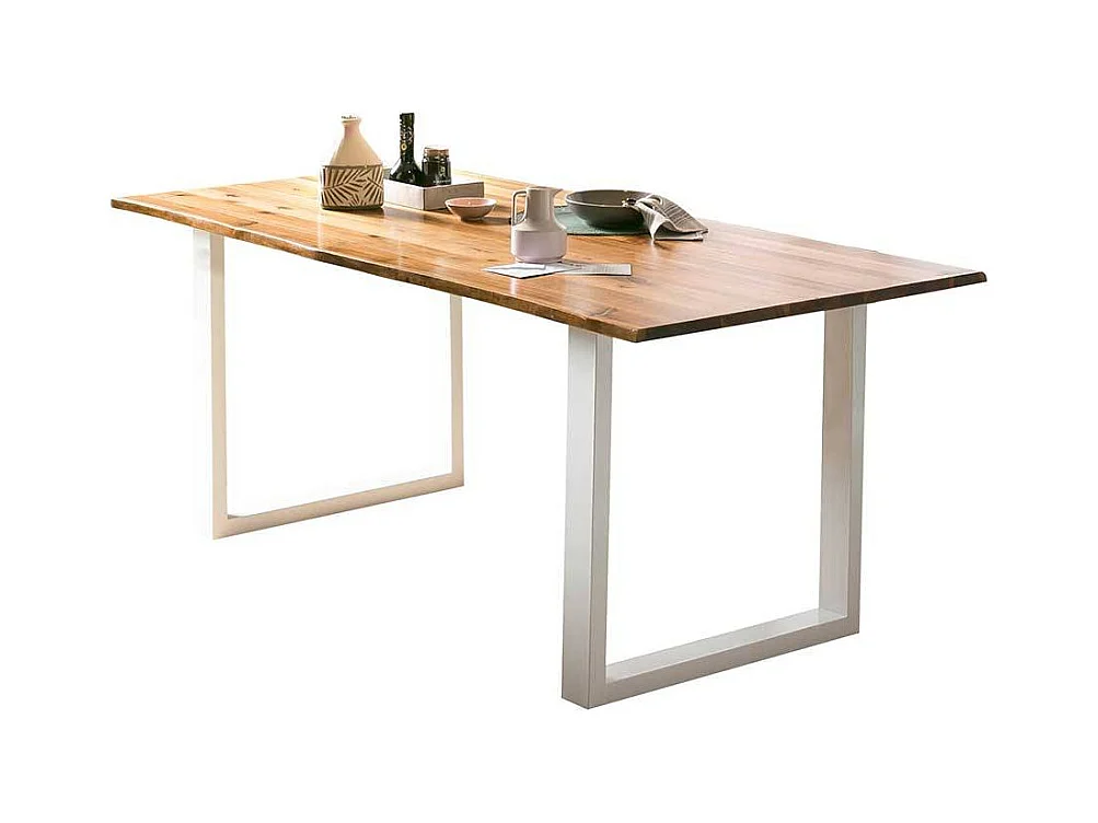 Baumkante Tisch Akazie mit weißem Bügelgestell Metall