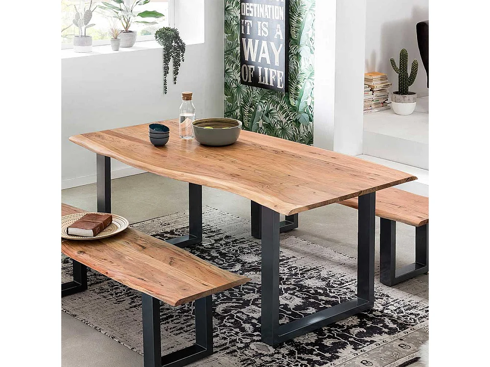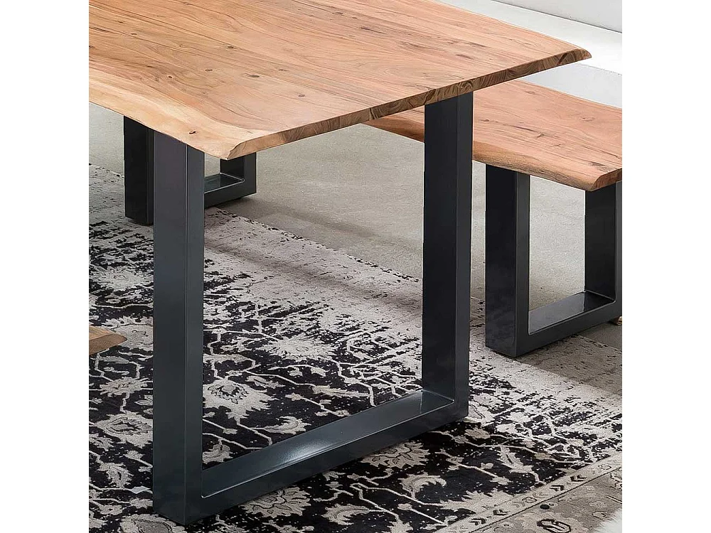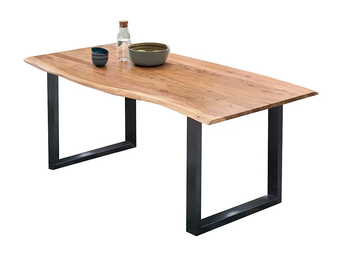 Baumkanten Esstisch aus Akazie Massivholz und Stahl 160 cm breit