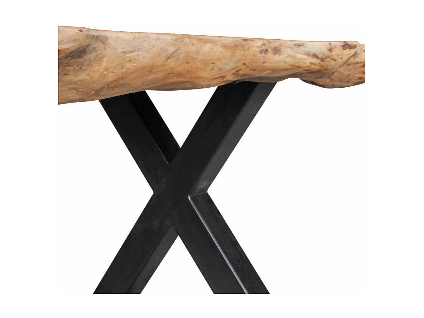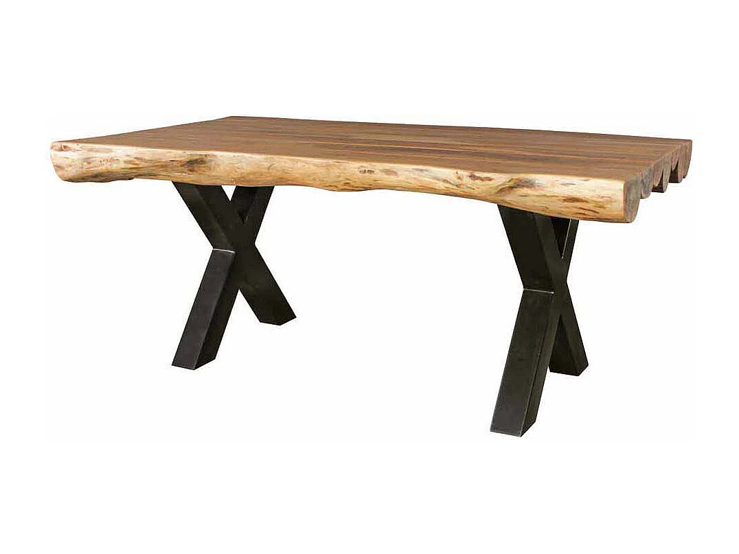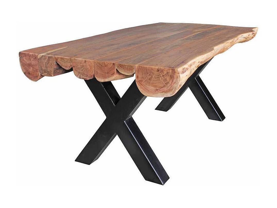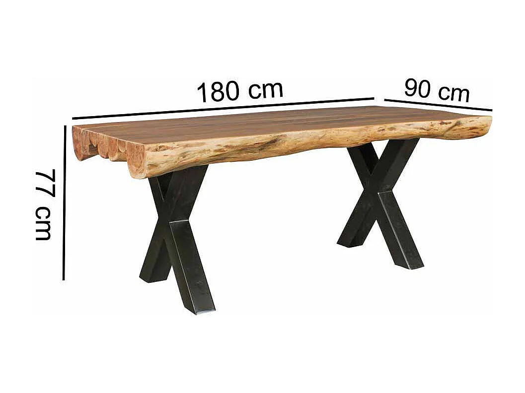 Baumkanten Esstisch aus Akazie Massivholz X-Fußgestell Metall Schwarz