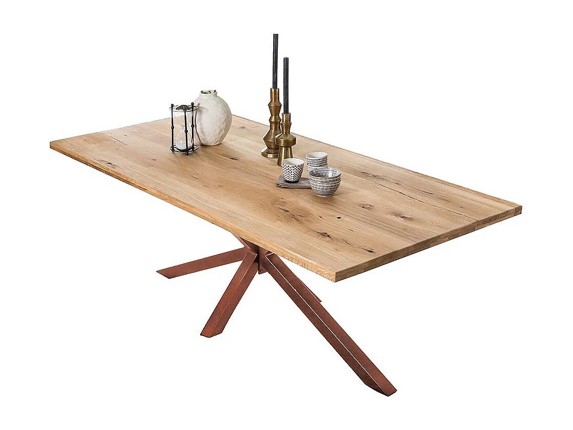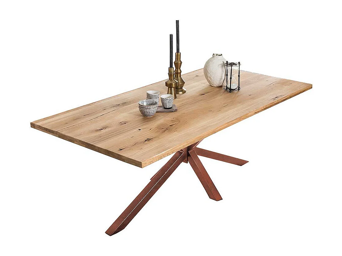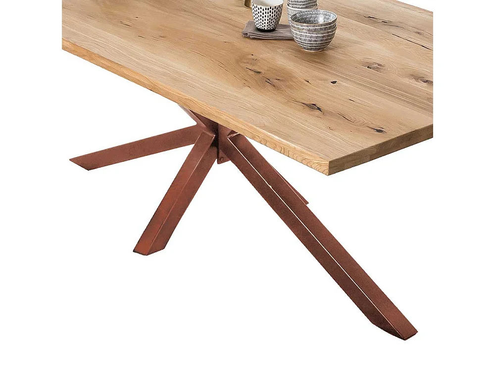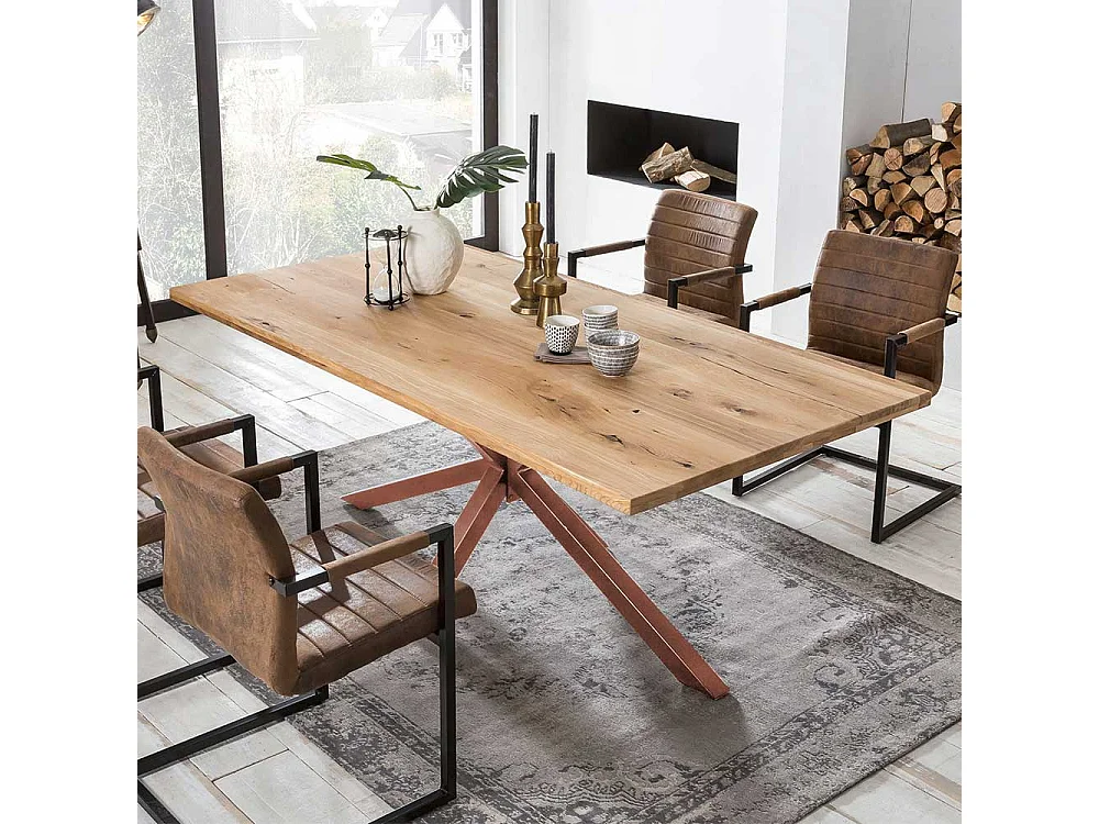 Baumkanten Esstisch aus Wildeiche Massivholz Eisen