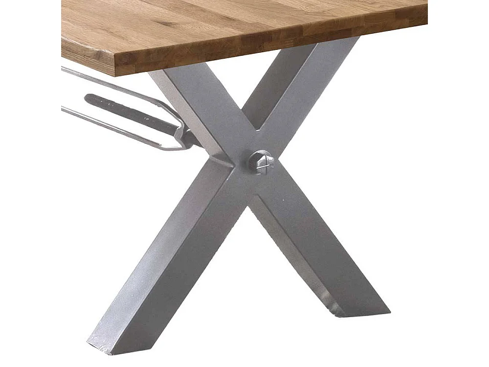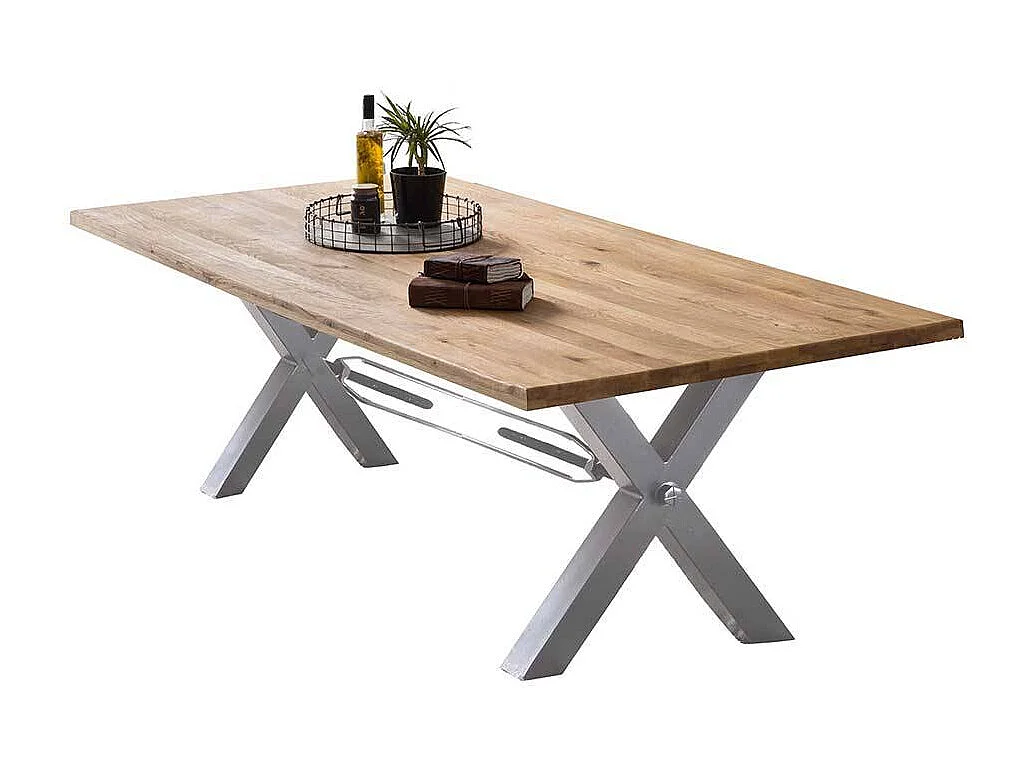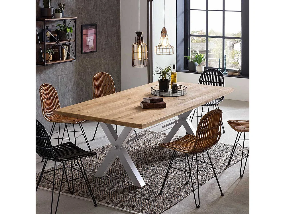 Baumkanten Esstisch aus Wildeiche Massivholz Metallgestell in Weiß