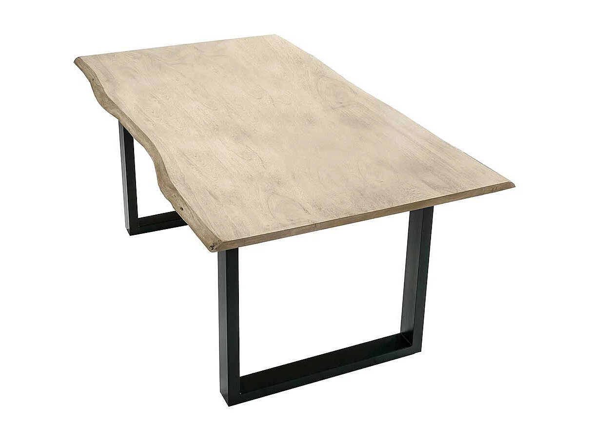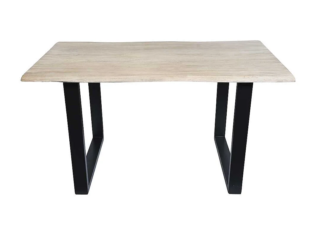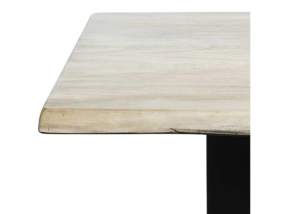 Baumkanten Esszimmertisch aus Akazie massiv gekälkt und Stahl Loft Design