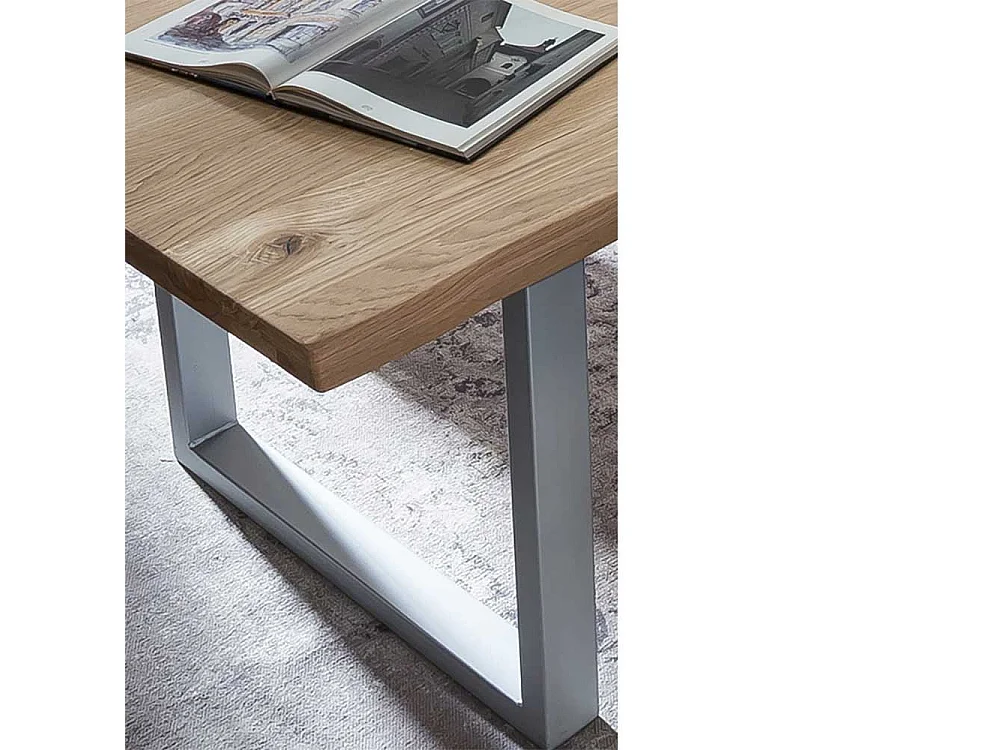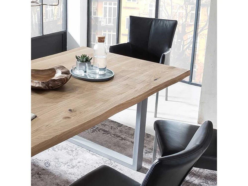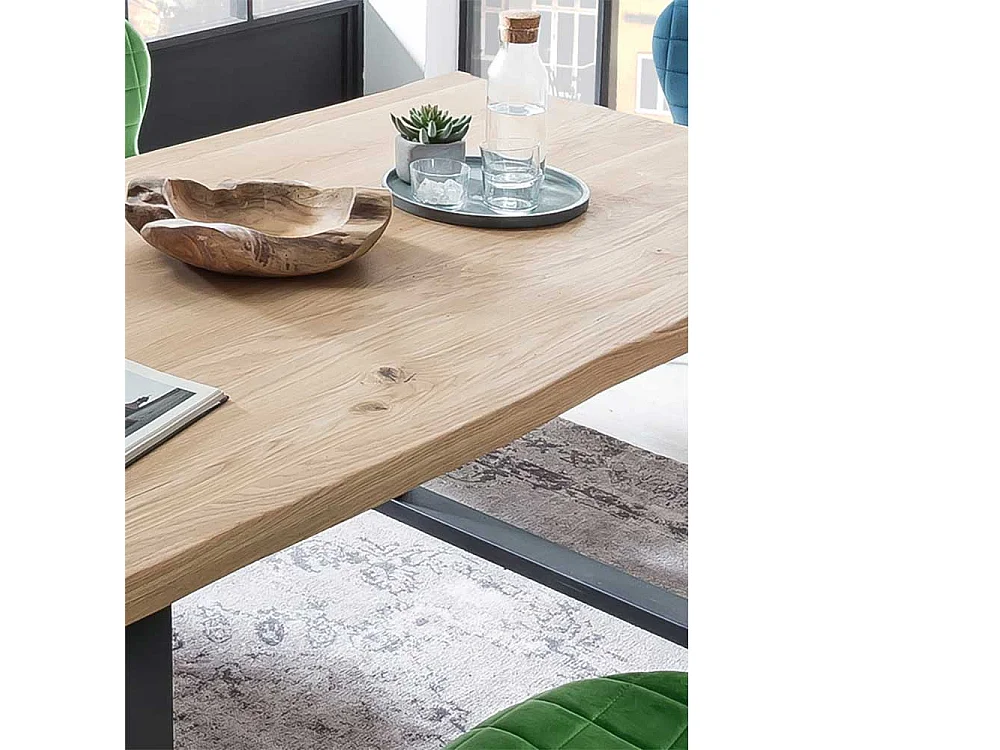 Baumkanten Esszimmertisch aus Wildeiche Massivholz und Metall Loft Design
