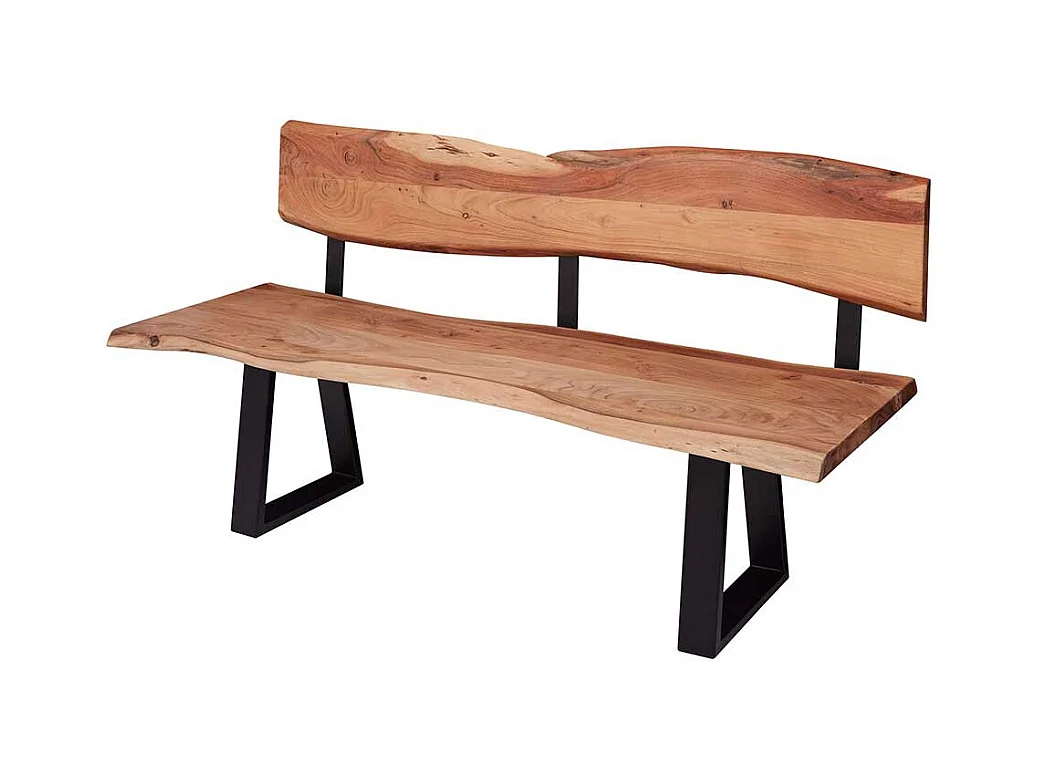 Baumkanten Sitzbank aus Akazie Massivholz Eisen