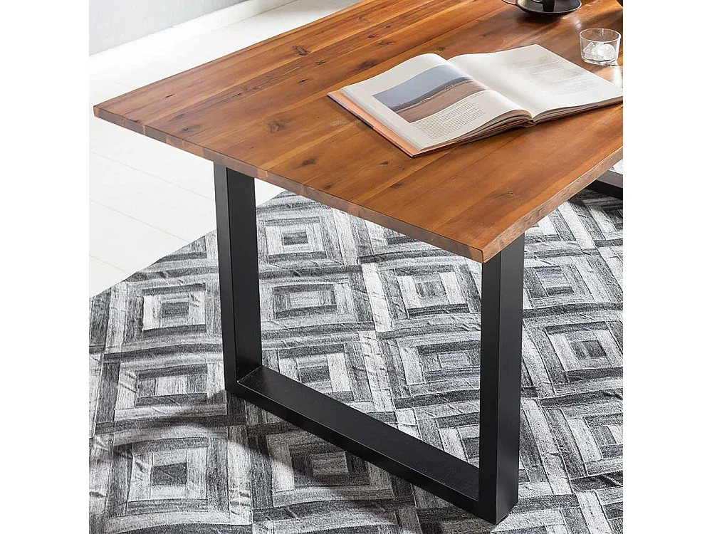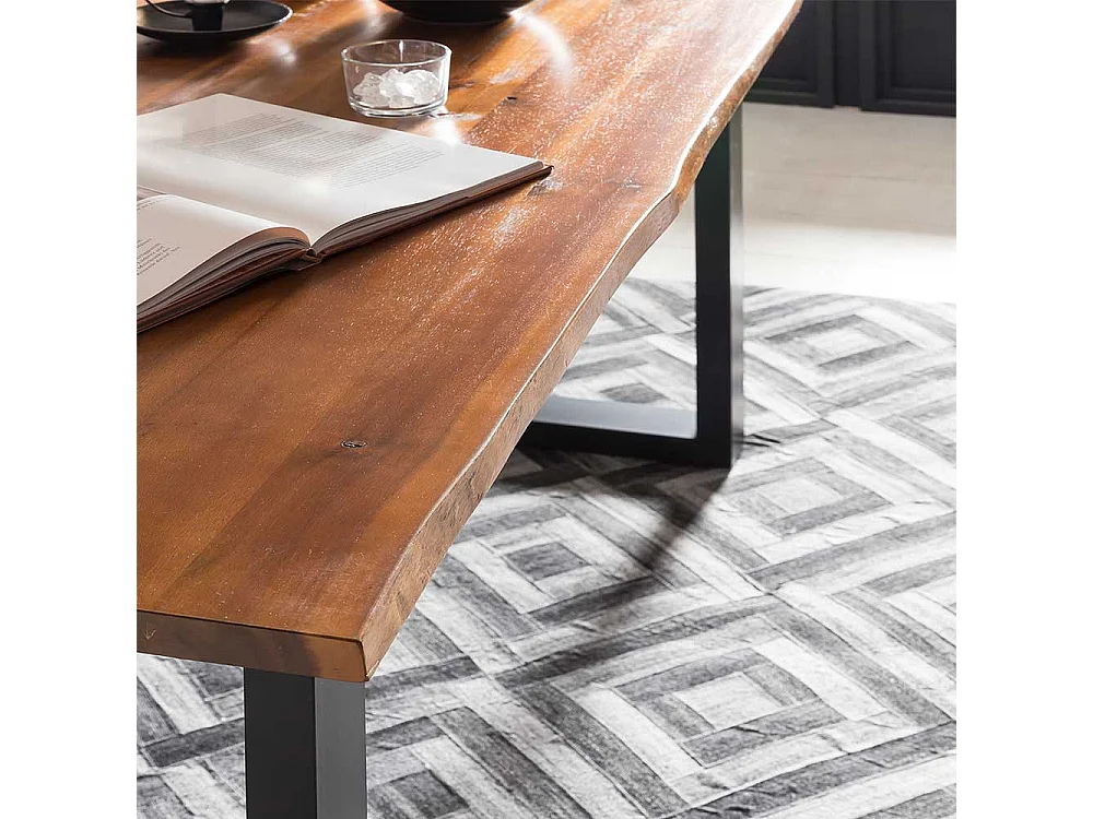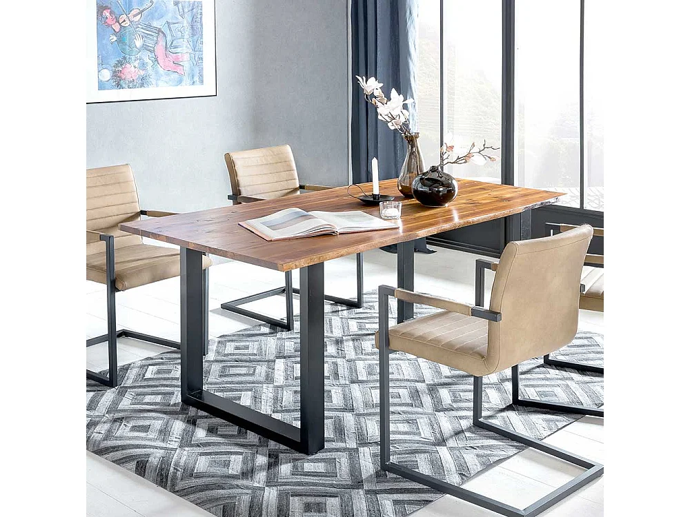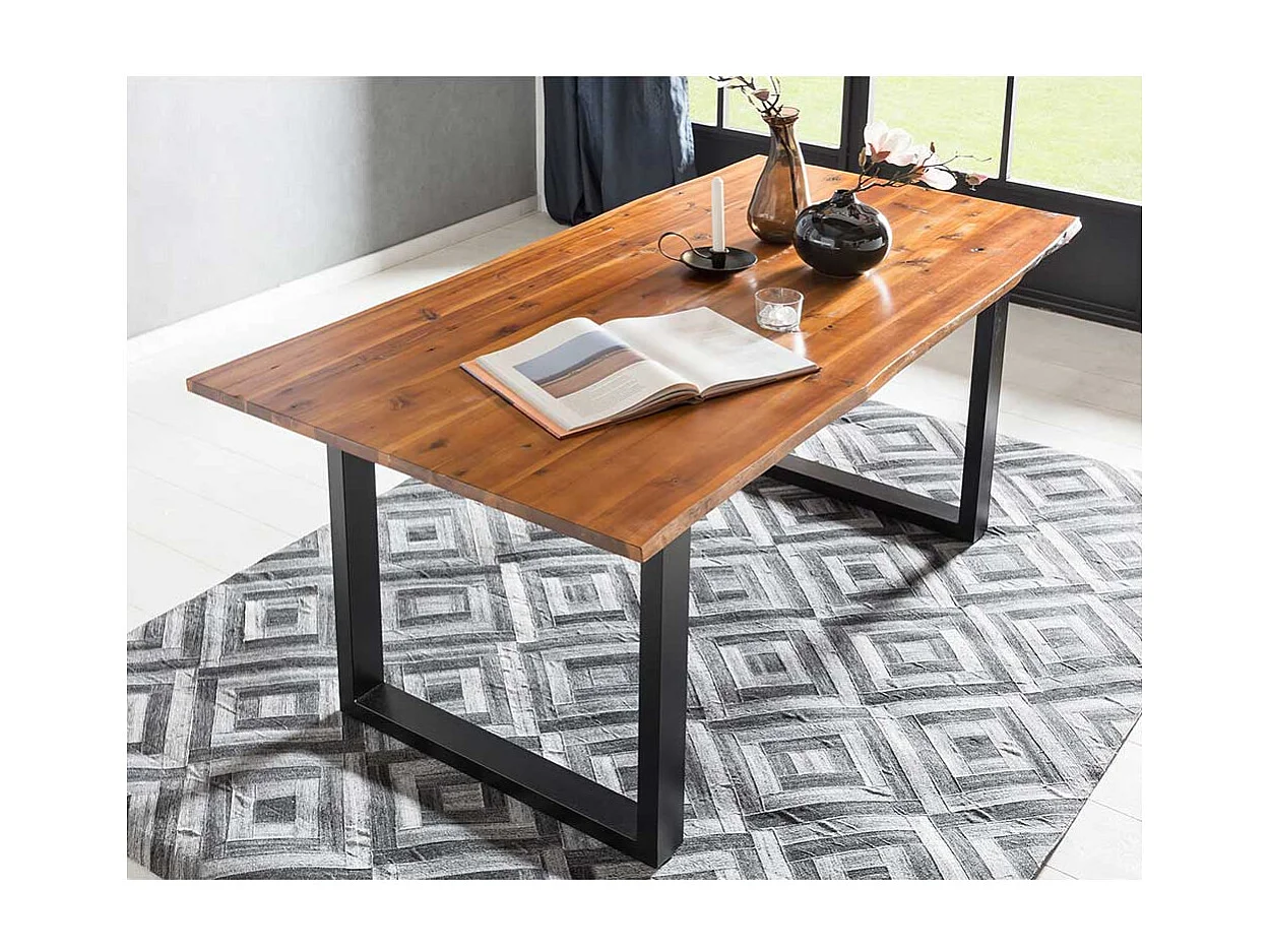 Baumkanten Tisch in Akaziefarben und Schwarz Massivholz und Stahl