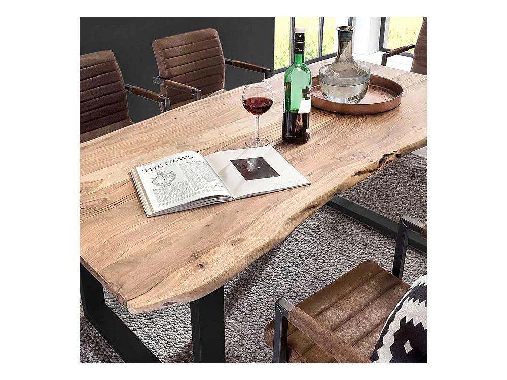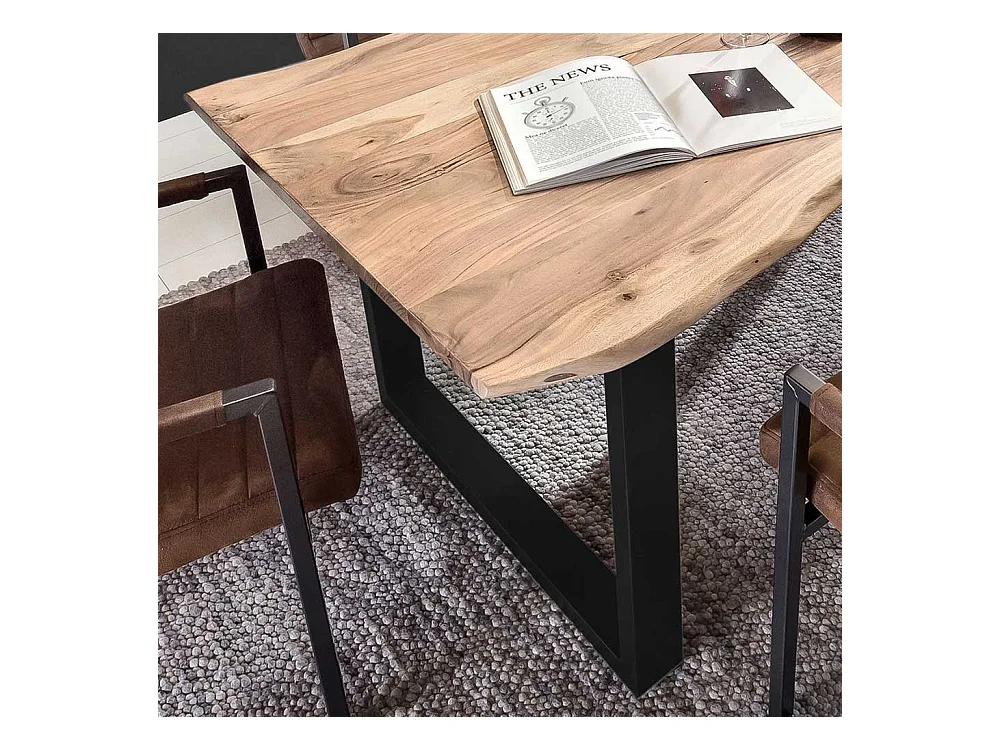 Baumkantentisch aus Akazie Massivholz und Eisen Loft Design