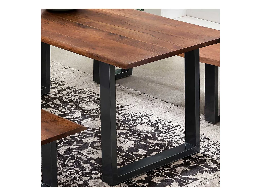 Baumkantentisch in Nussbaumfarben lackiert und gewachst Akazie Massivholz und Stahl