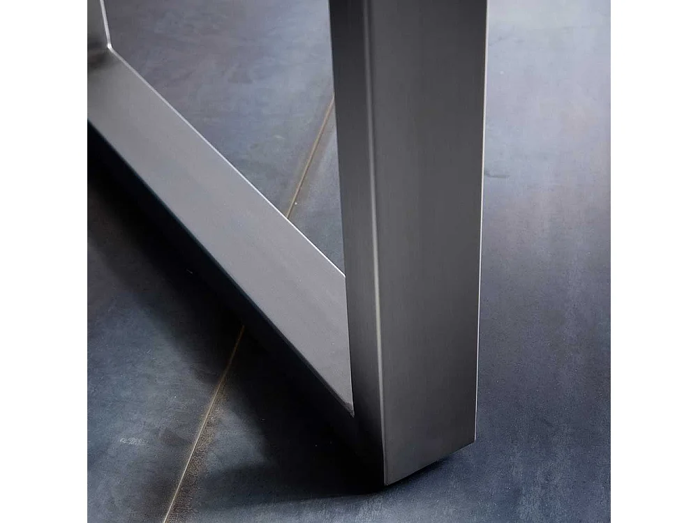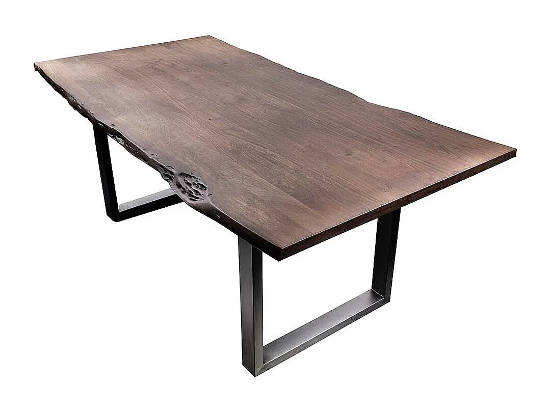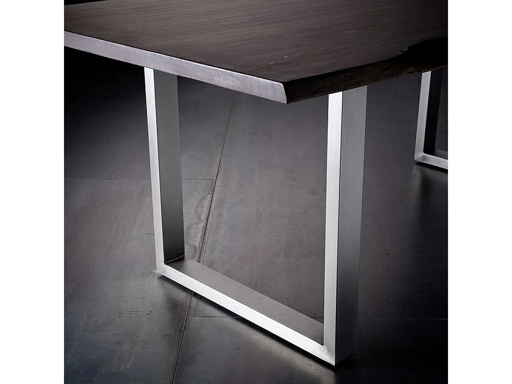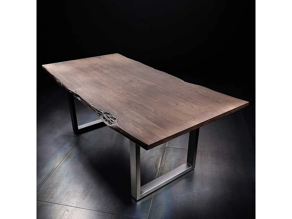 Baumkantentisch in Walnussfarben und Silber Akazie Massivholz und Edelstahl