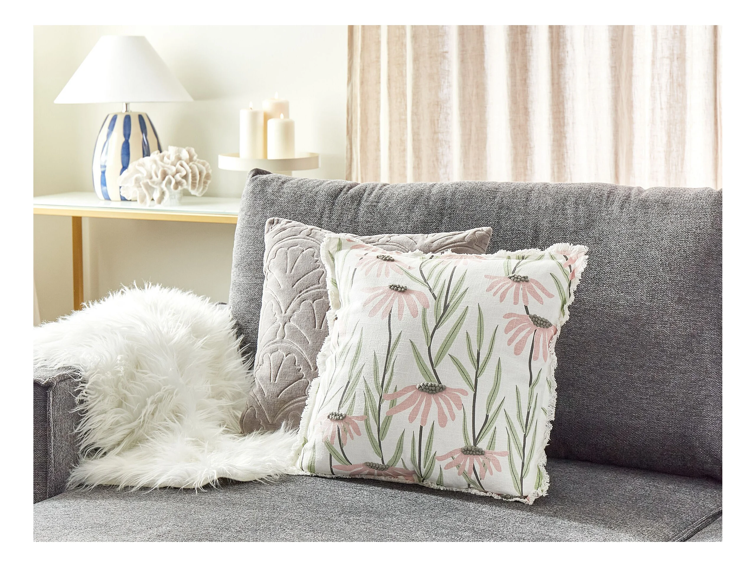 Baumwollkissen im Boho-Stil mit Blumenmuster und Fransen Handgefertigt abnehmbarer Bezug 45 x 45 cm Mehrfarbig Gynura
