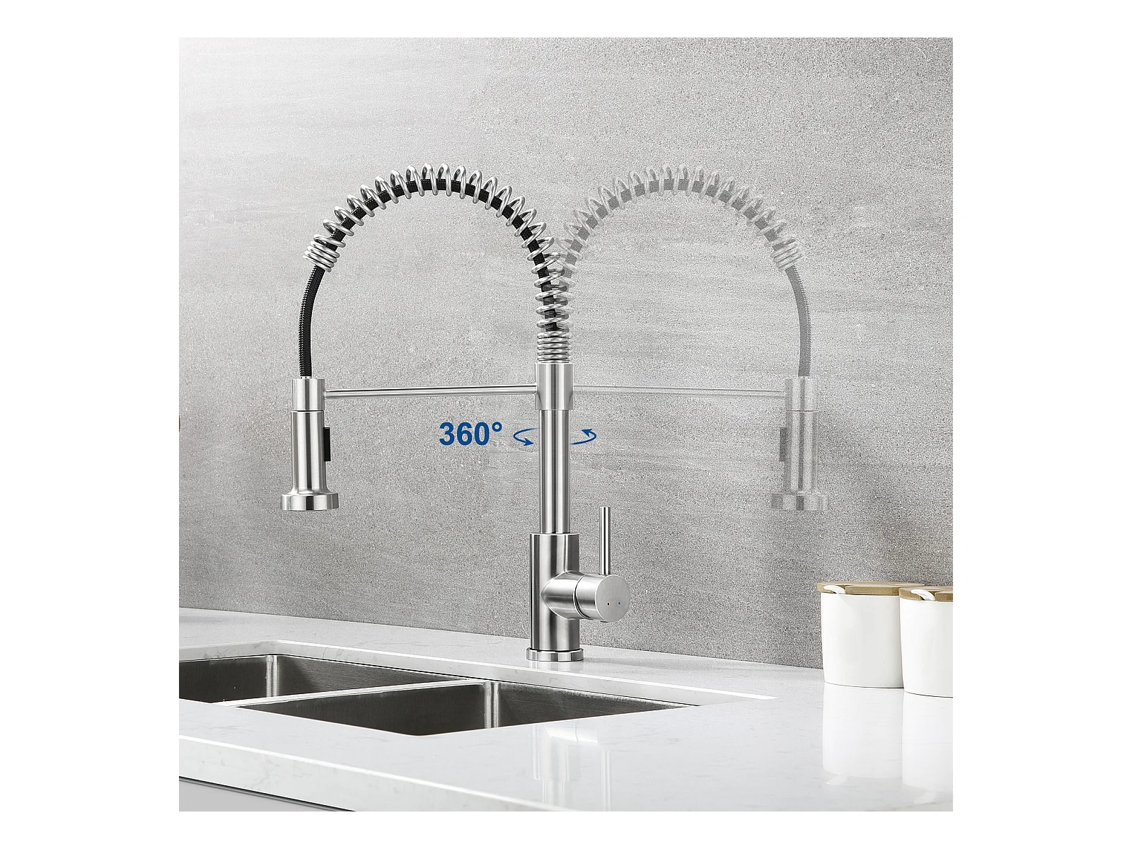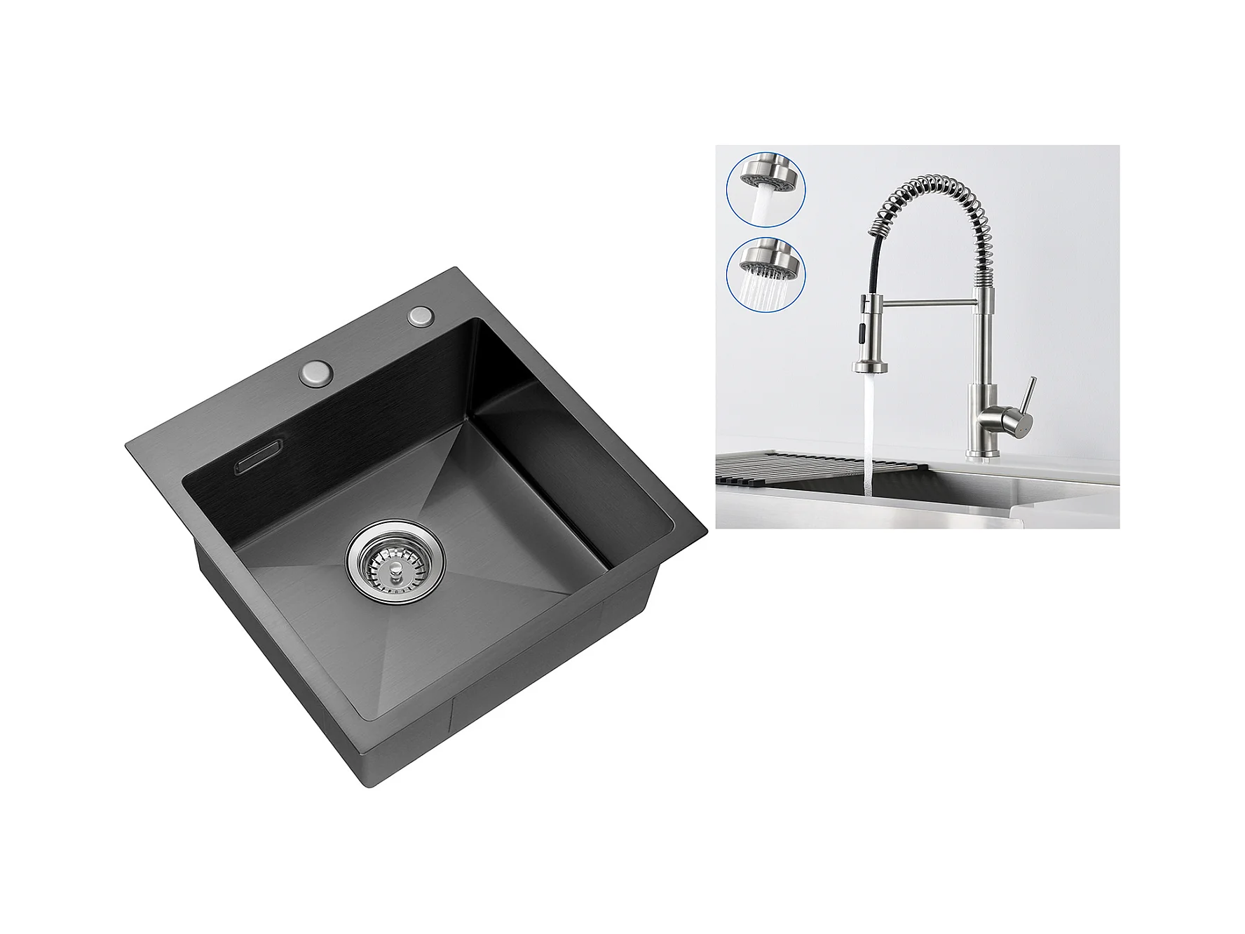 Becken Küchenspüle 45x45CM 304 Edelstahl, Einbau/Aufputz + Feder Küchenarmatur mit ausziehbarem Sprühkopf, 2 Modi, 360° schwenkbar, Gebürstet