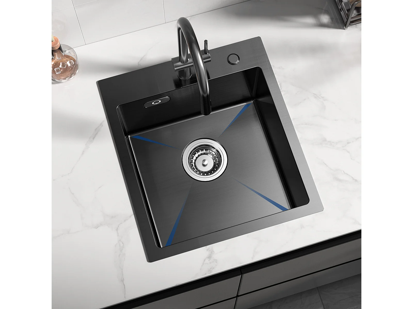 Küchenspüle 1 Becken Anthrazit Schwarz 40*45*19CM - Edelstahlspüle Küchenspüle + 3-Wege-Spültischmischer, 2 Hebel, Schwarz