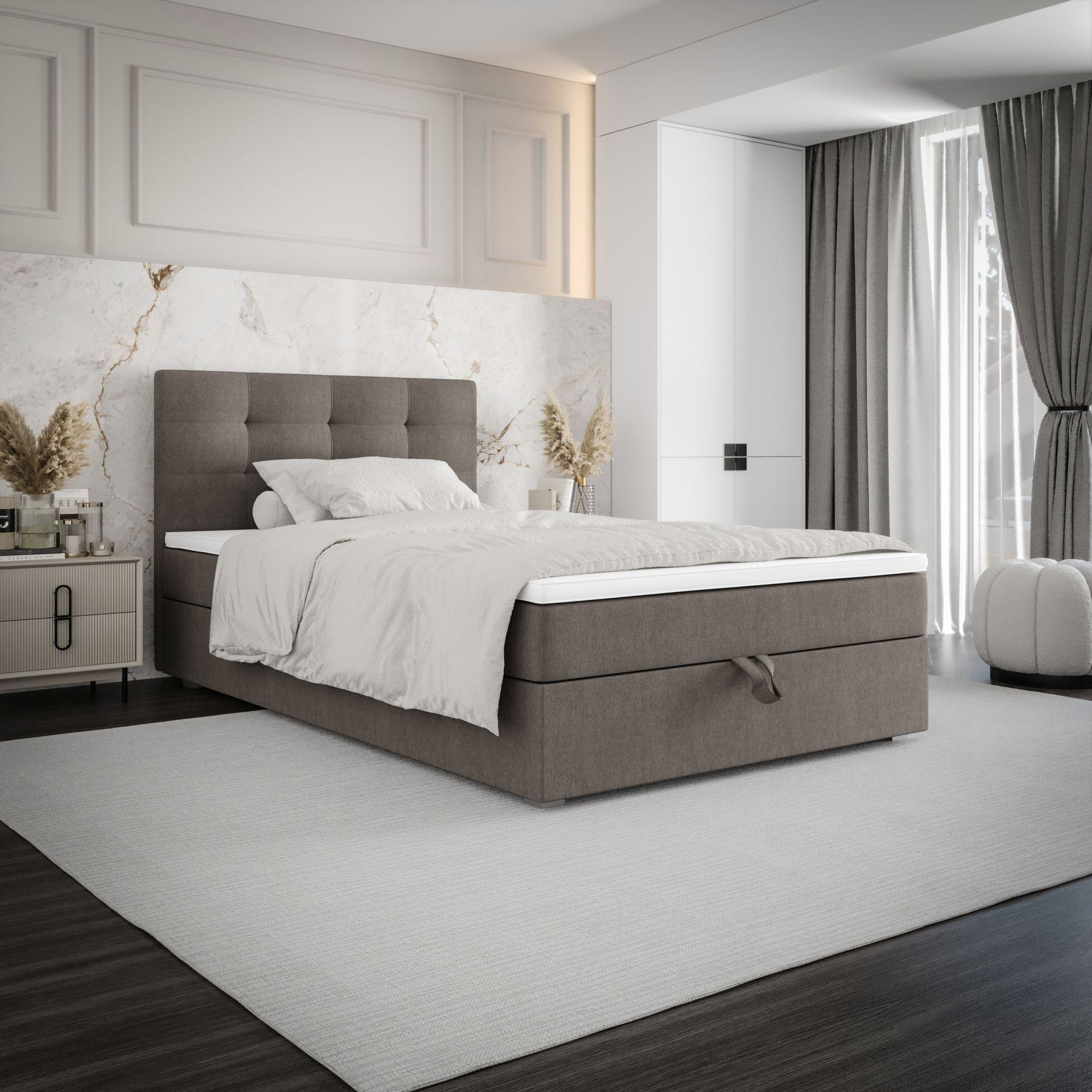 BEDANTE Boxspringbett FADO 11 80x200 Cosmic 03 Braun Bett Bettkasten Einzellbett Hotelbett Topper Matratze Schlafzimmer Stauraum