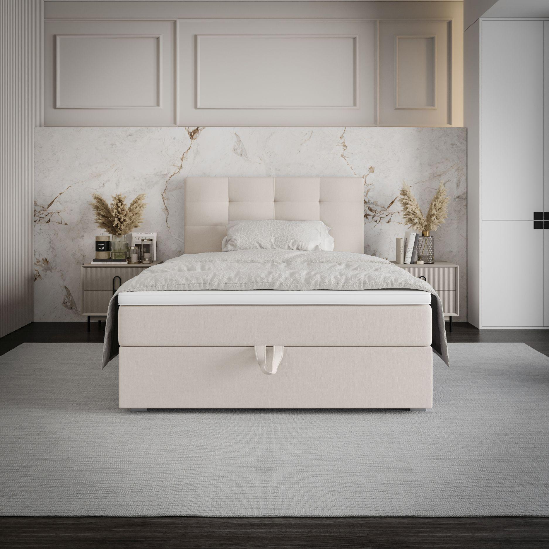 BEDANTE Boxspringbett FADO 11 80x200 Cosmic 10 Beige Bett Bettkasten Einzellbett Hotelbett Topper Matratze Schlafzimmer Stauraum