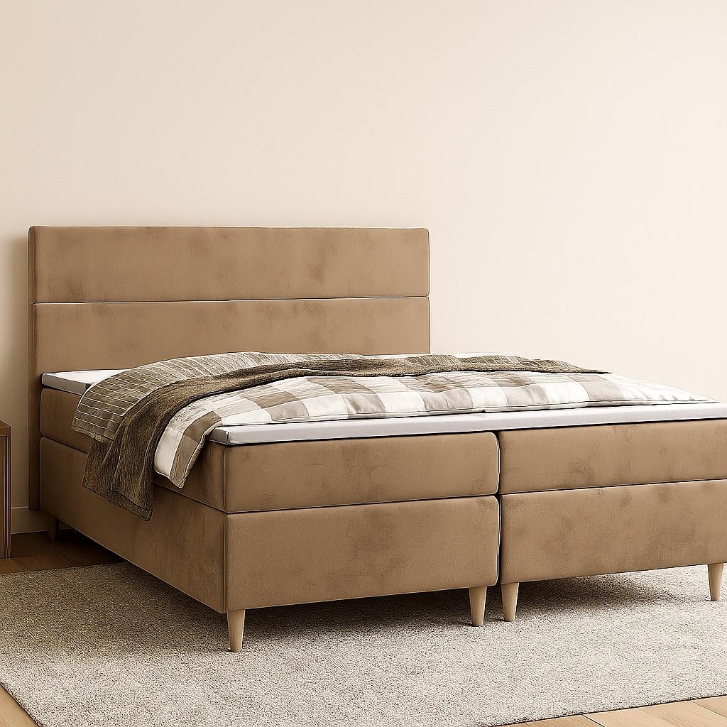 BEDANTE Boxspringbett FLO 140x200 Itaka 48 Hellbraun Bett Bettkasten Einzellbett Hotelbett Topper Matratze Schlafzimmer Stauraum