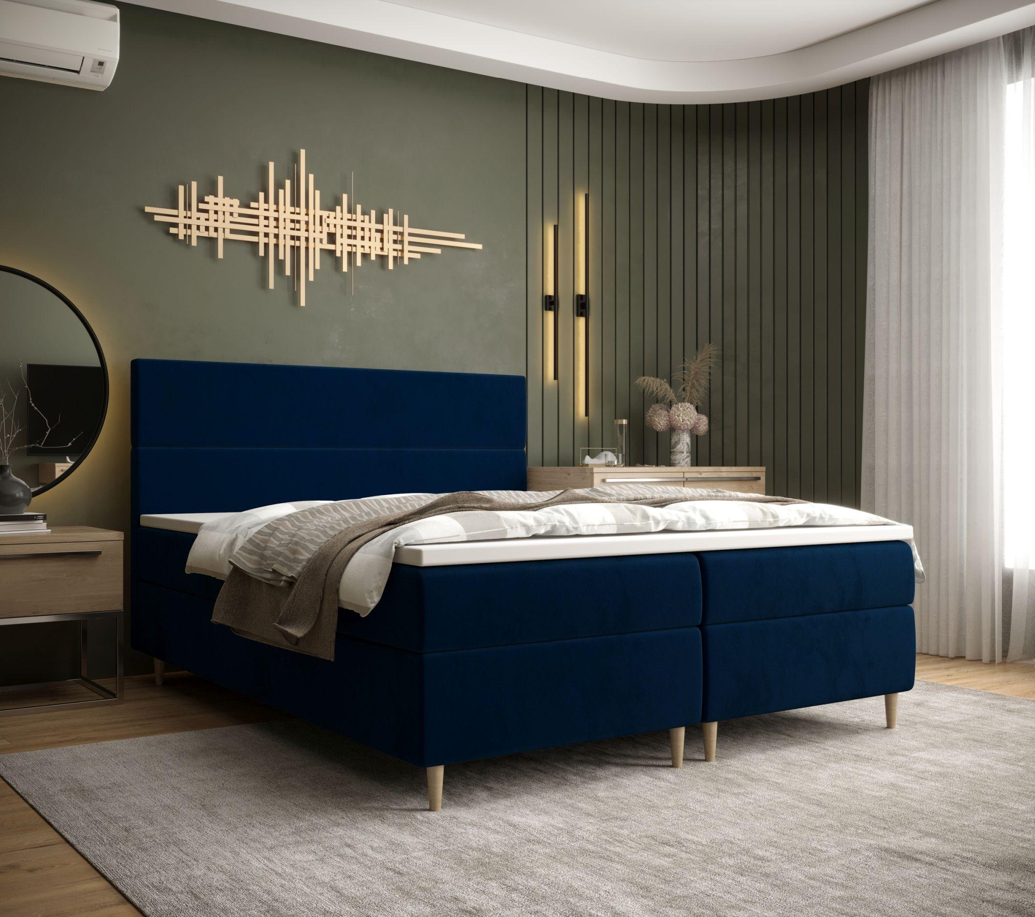 BEDANTE Boxspringbett FLO 160x200 Itaka 11 Dunkelblau Bett Bettkasten Einzellbett Hotelbett Topper Matratze Schlafzimmer Stauraum