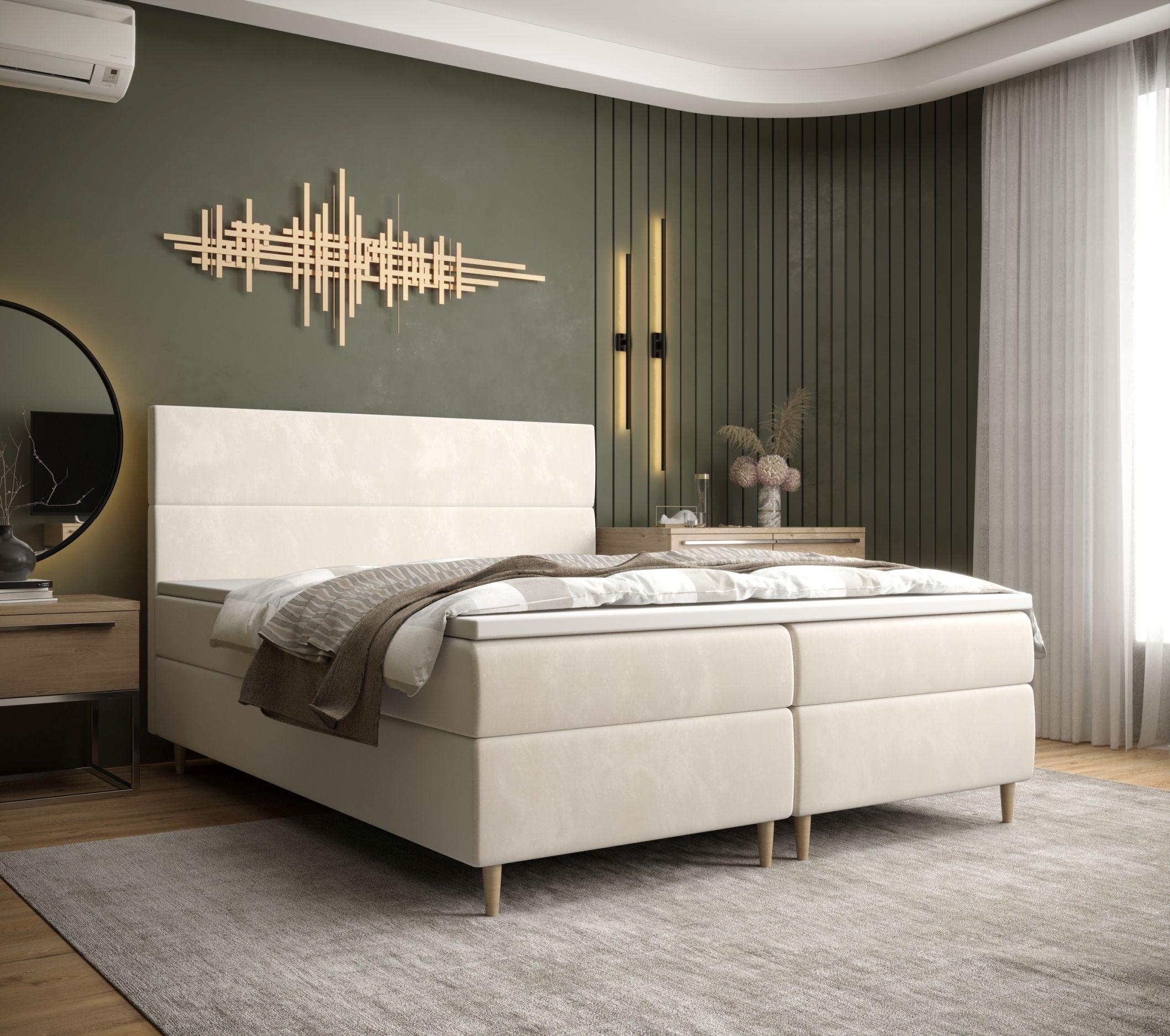BEDANTE Boxspringbett FLO 160x200 Itaka 16 Creme Bett Bettkasten Einzellbett Hotelbett Topper Matratze Schlafzimmer Stauraum