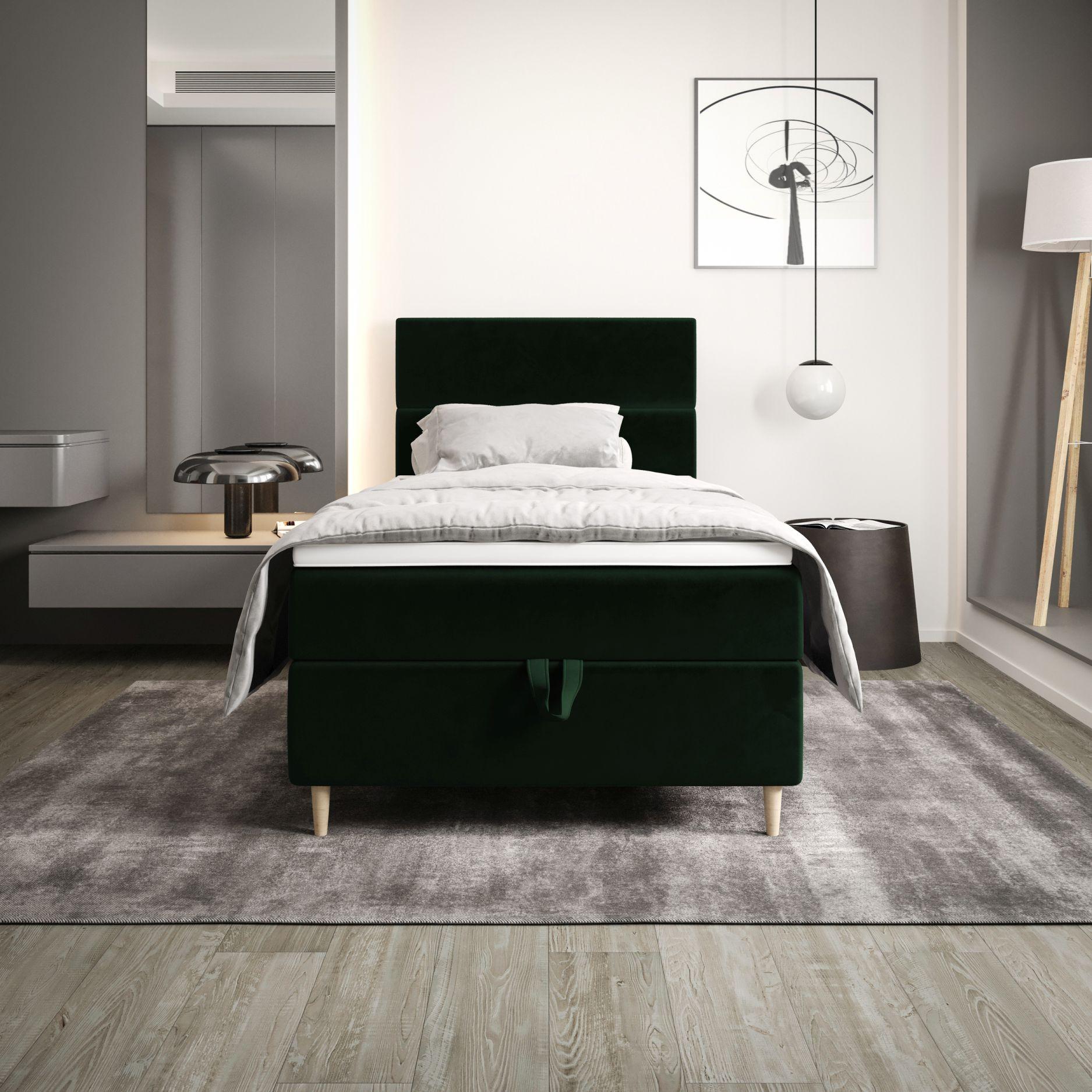 BEDANTE Boxspringbett FLO 80x200 Itaka 10 Dunkelgrün Bett Bettkasten Einzellbett Hotelbett Topper Matratze Schlafzimmer Stauraum