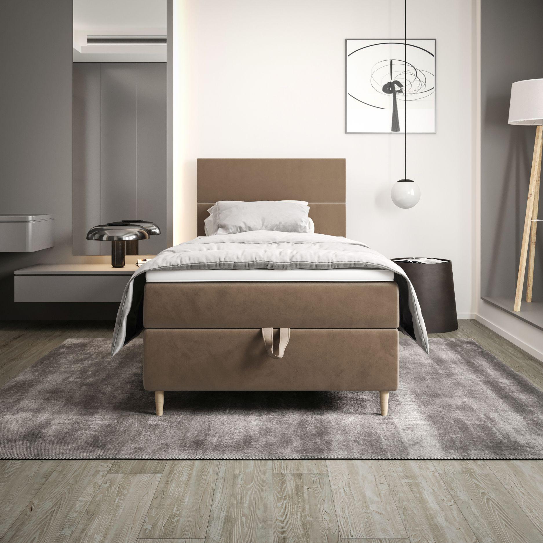 BEDANTE Boxspringbett FLO 80x200 Itaka 48 Hellbraun Bett Bettkasten Einzellbett Hotelbett Topper Matratze Schlafzimmer Stauraum