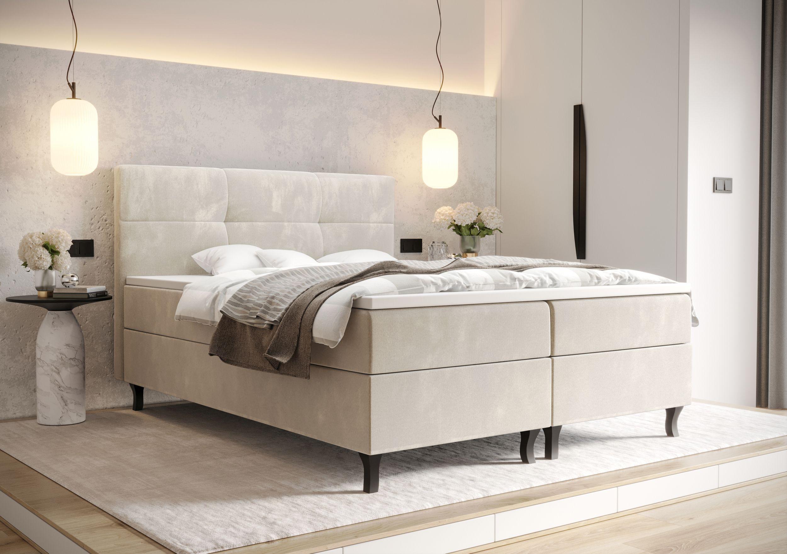 BEDANTE Boxspringbett LIMBA 140x200 Monolith 02 Creme Bett Bettkasten Ehebett Hotelbett Topper Matratze Schlafzimmer Stauraum