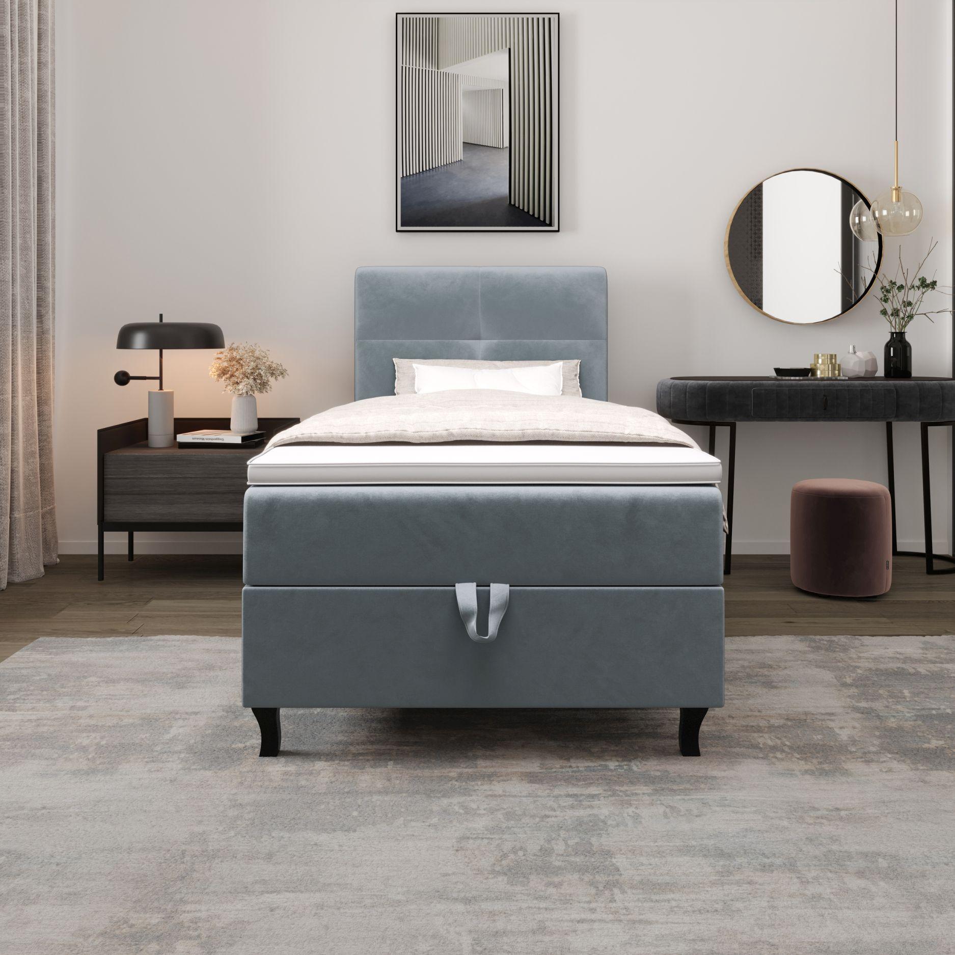 BEDANTE Boxspringbett LIMBA 80x200 Monolith 72 Blau Bett Bettkasten Einzellbett Hotelbett Topper Matratze Schlafzimmer Stauraum