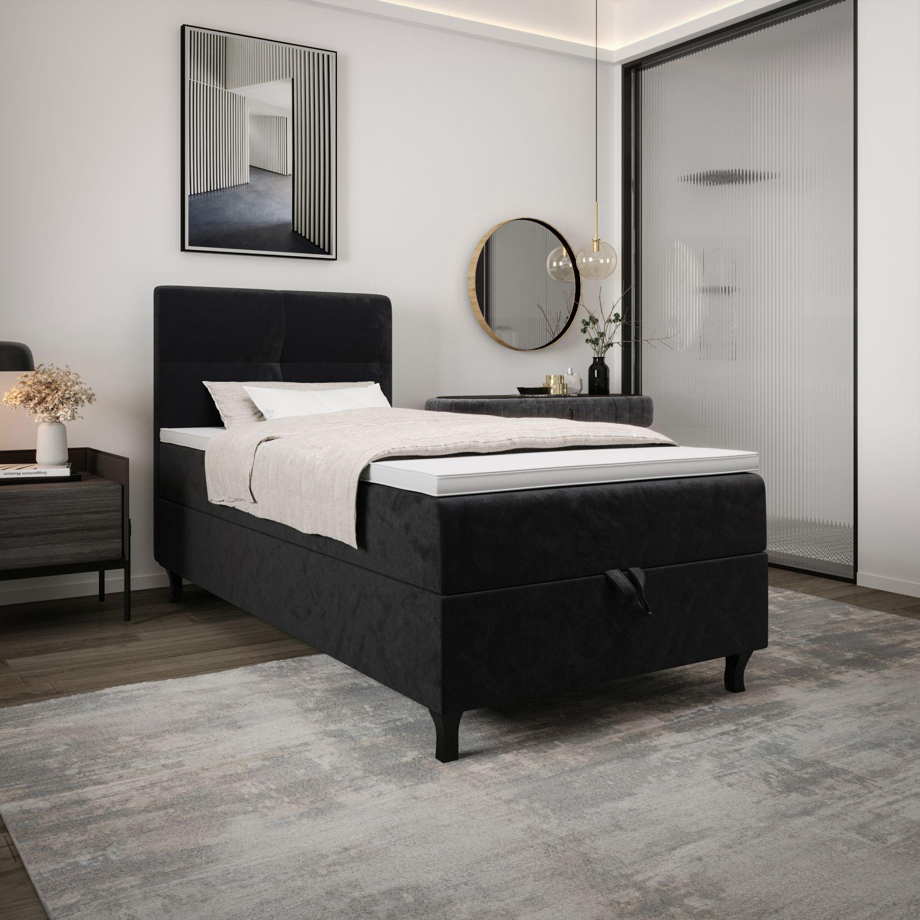 BEDANTE Boxspringbett LIMBA 80x200 Monolith 97 Dunkelgrau Bett Bettkasten Einzellbett Hotelbett Topper Matratze Schlafzimmer Stauraum