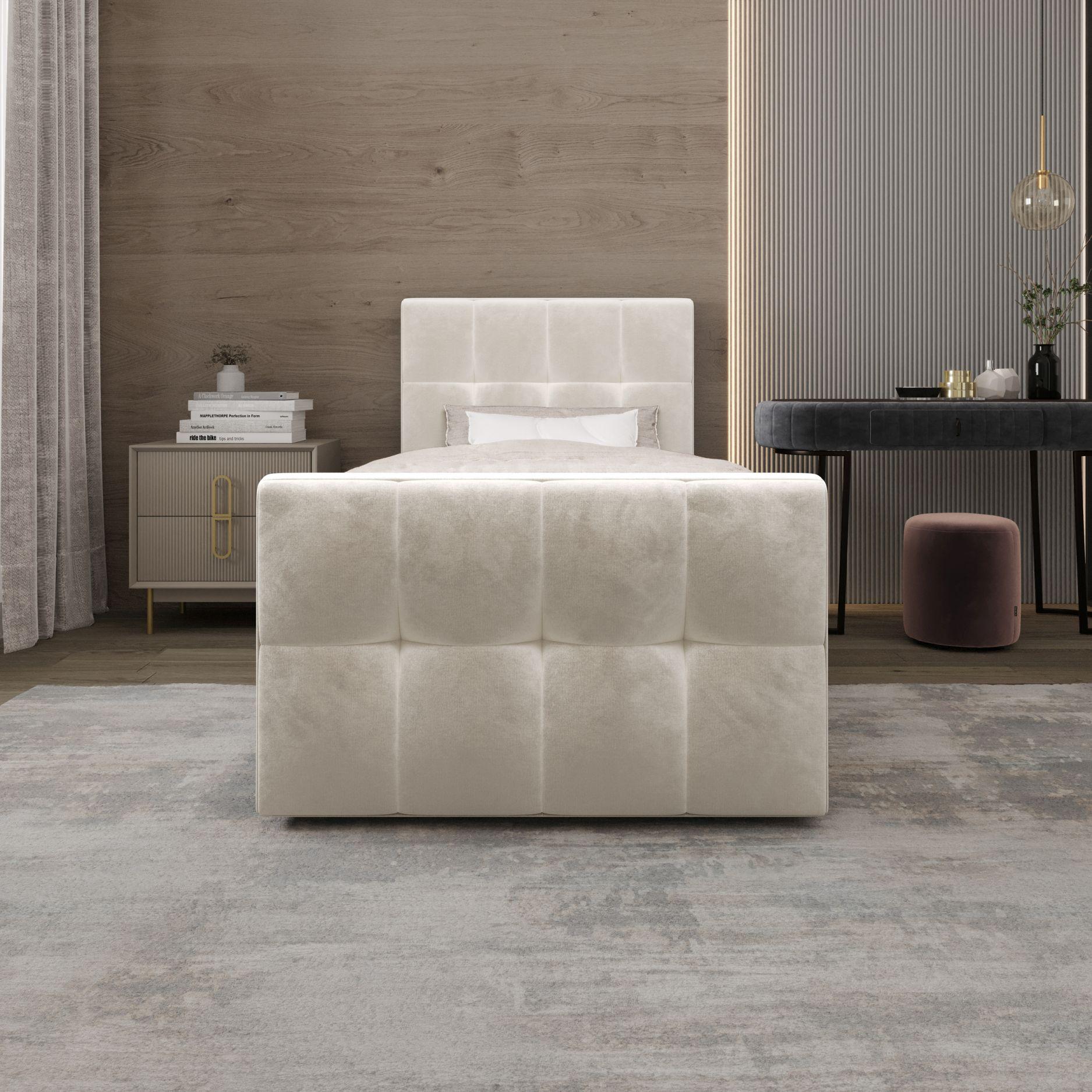 BEDANTE Boxspringbett MANHATTAN 80x200 Monolith 02 Creme Bett Bettkasten Einzellbett Hotelbett Topper Matratze Schlafzimmer Stauraum