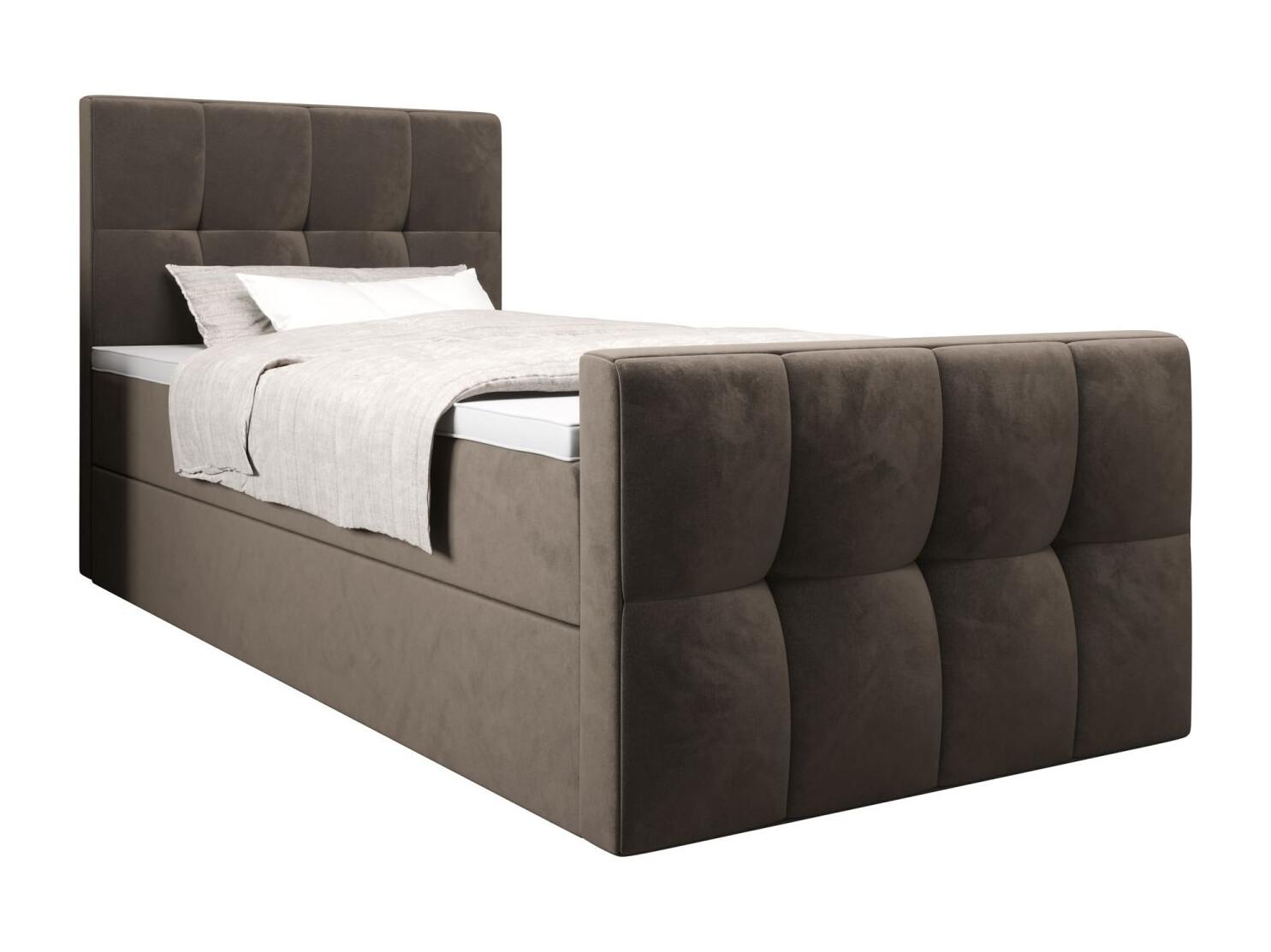 BEDANTE Boxspringbett MANHATTAN 80x200 Monolith 15 Braun Bett Bettkasten Einzellbett Hotelbett Topper Matratze Schlafzimmer Stauraum