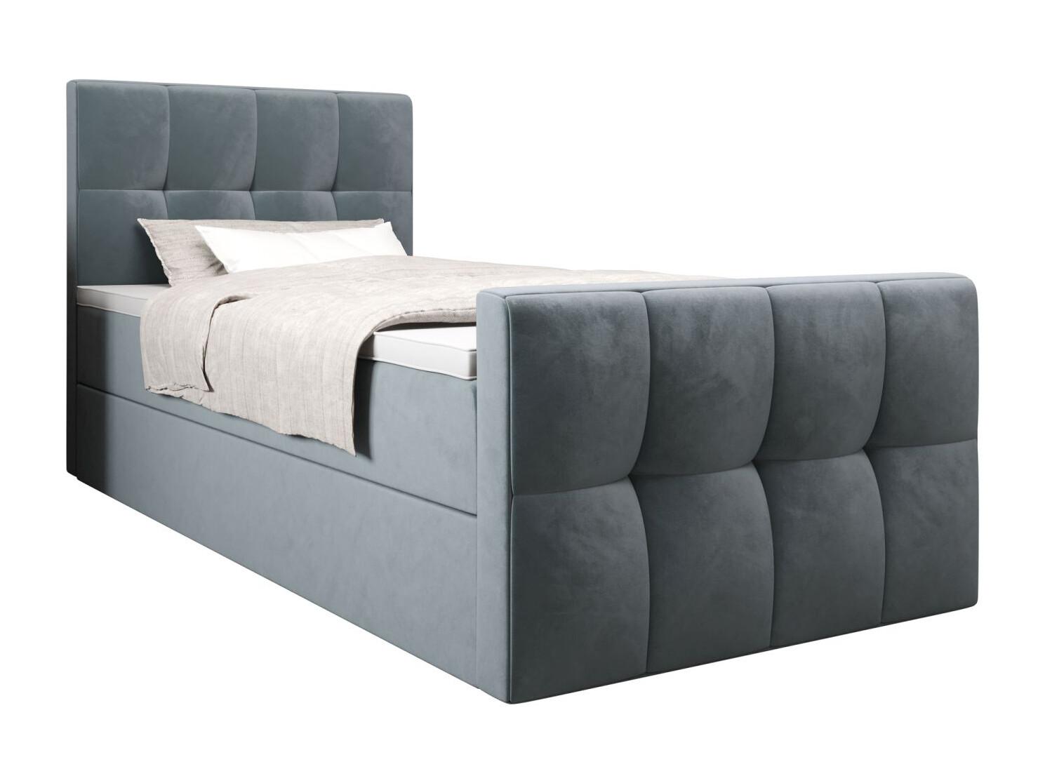 BEDANTE Boxspringbett MANHATTAN 80x200 Monolith 72 Blau Bett Bettkasten Einzellbett Hotelbett Topper Matratze Schlafzimmer Stauraum