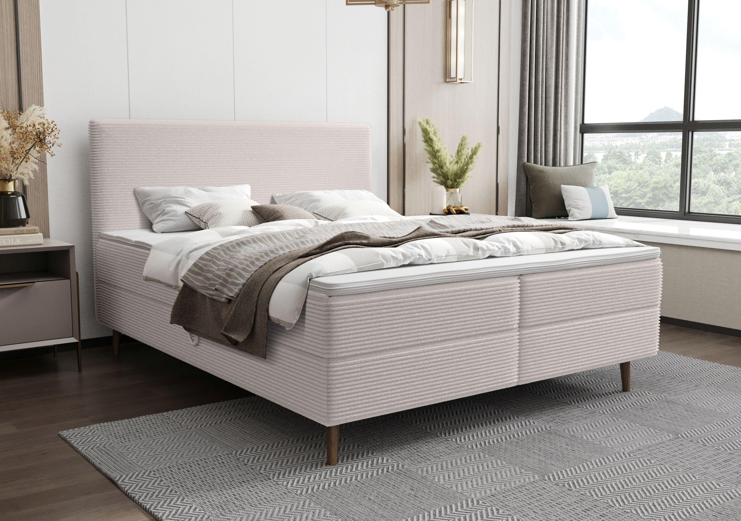 BEDANTE Boxspringbett NARA 140x200 POSO 100 Beige Bett Bettkasten Ehebett Hotelbett Topper Matratze Schlafzimmer Stauraum