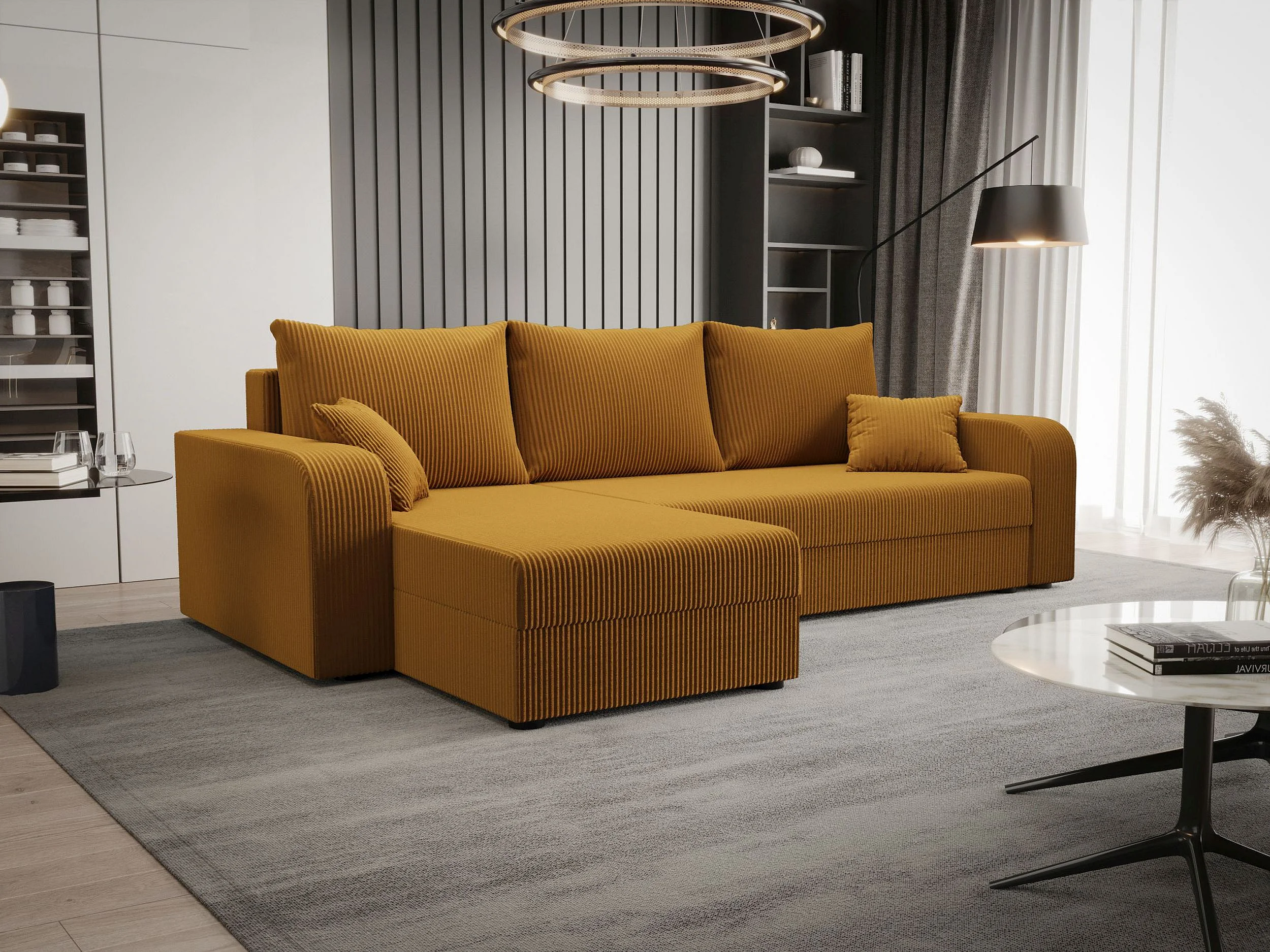 BEDANTE ECKSOFA HEWLET L BIS Zoom 9 Links Orange mit Schlaffunktion L-Form Sofa mit Stauraum Bettkasten Wohnzimmersofa Couch Sofa Bettsofa Bettkasten Bettcouch