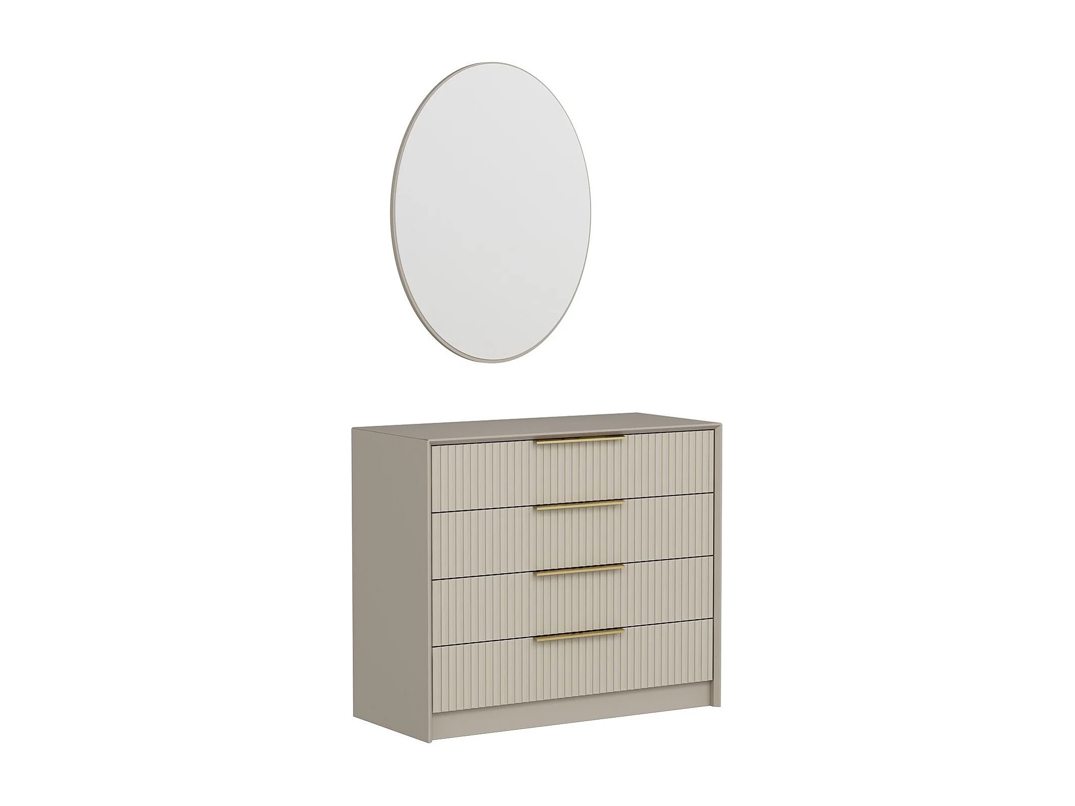 Beige Holzkommode "Kale" mit 4 Schubladen und Spiegel 85x100x45 cm modernes und funktionales Design