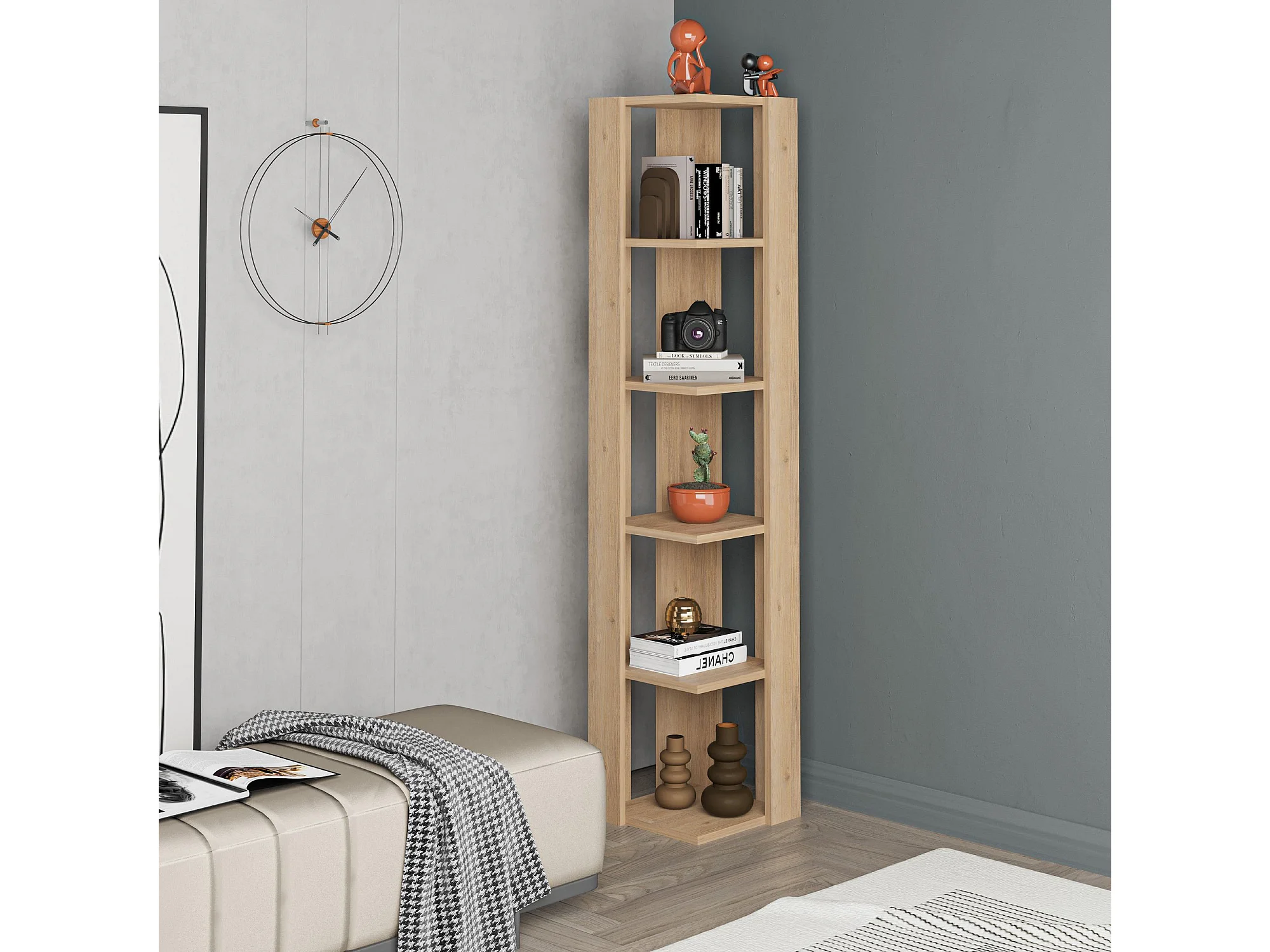 Beige Holzregal "Nati" 32x32x161 cm, 5 Regalböden, elegantes Design und 20 kg Tragfähigkeit