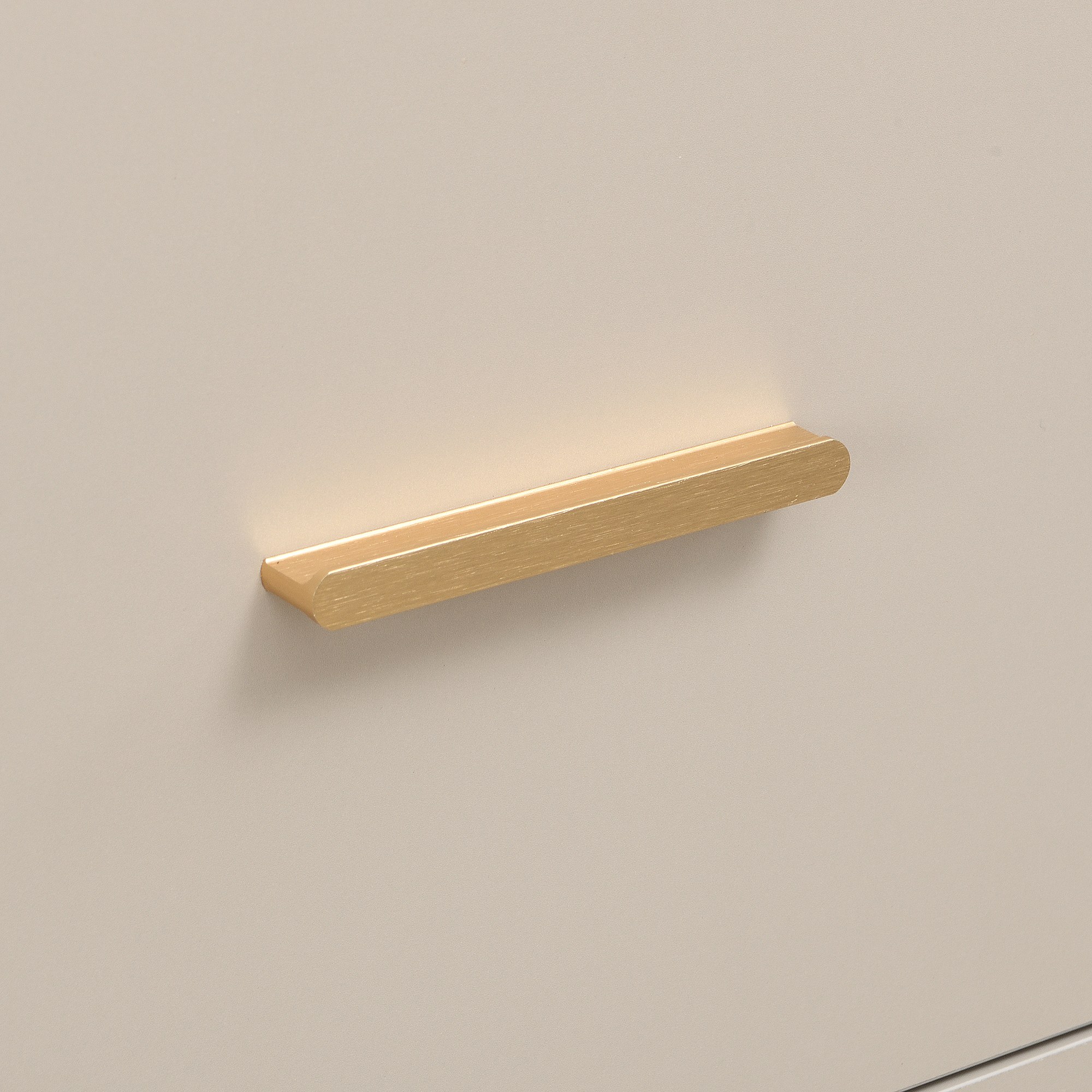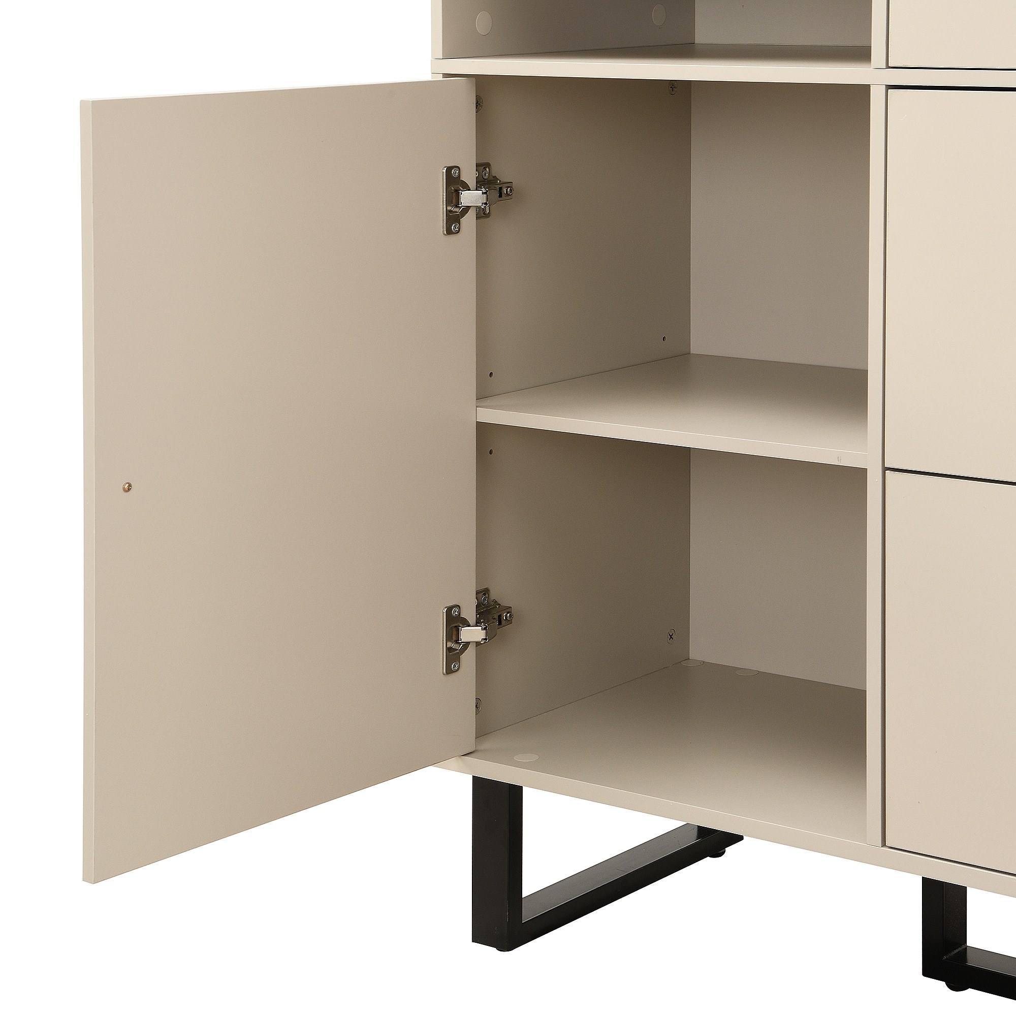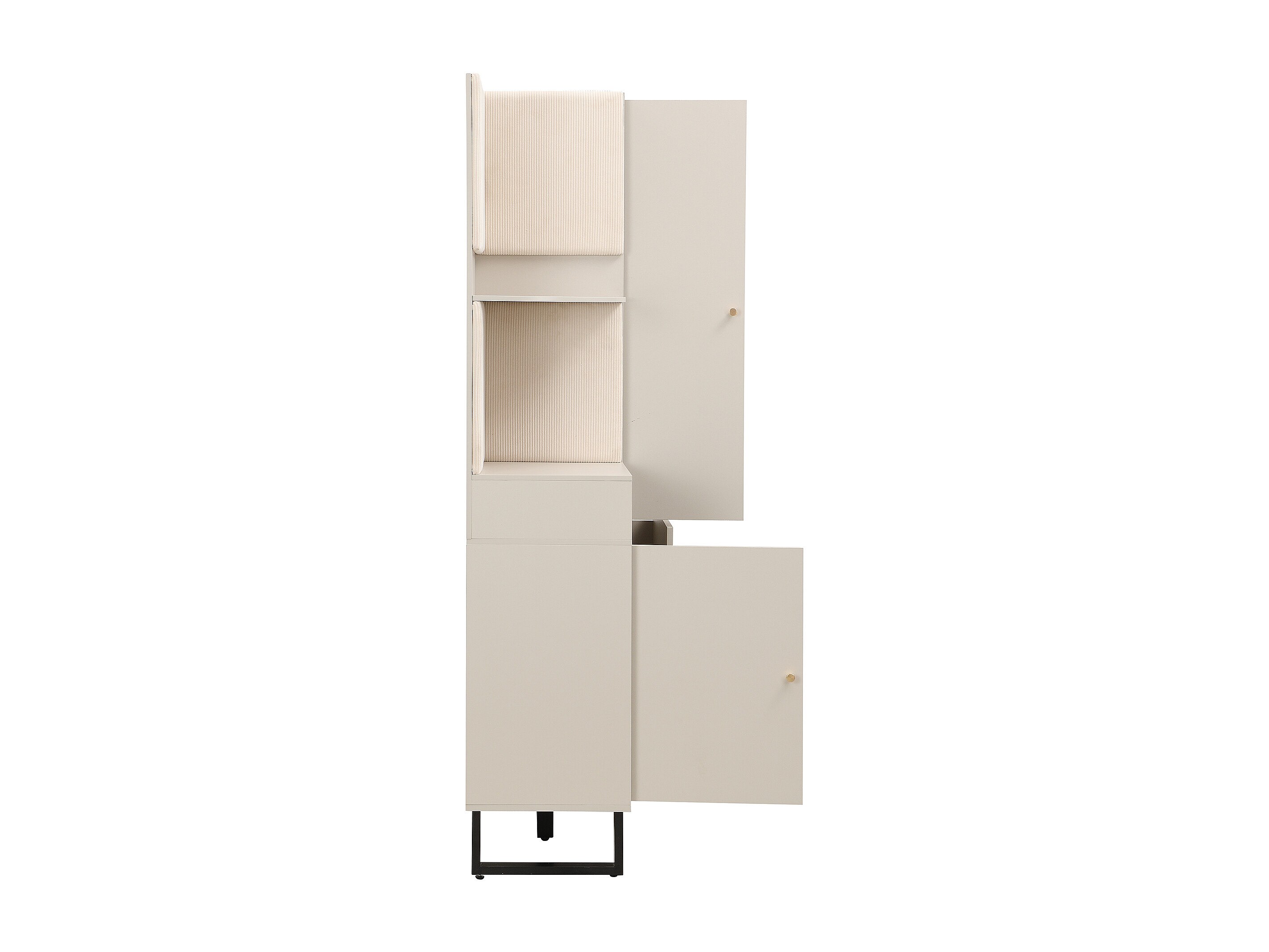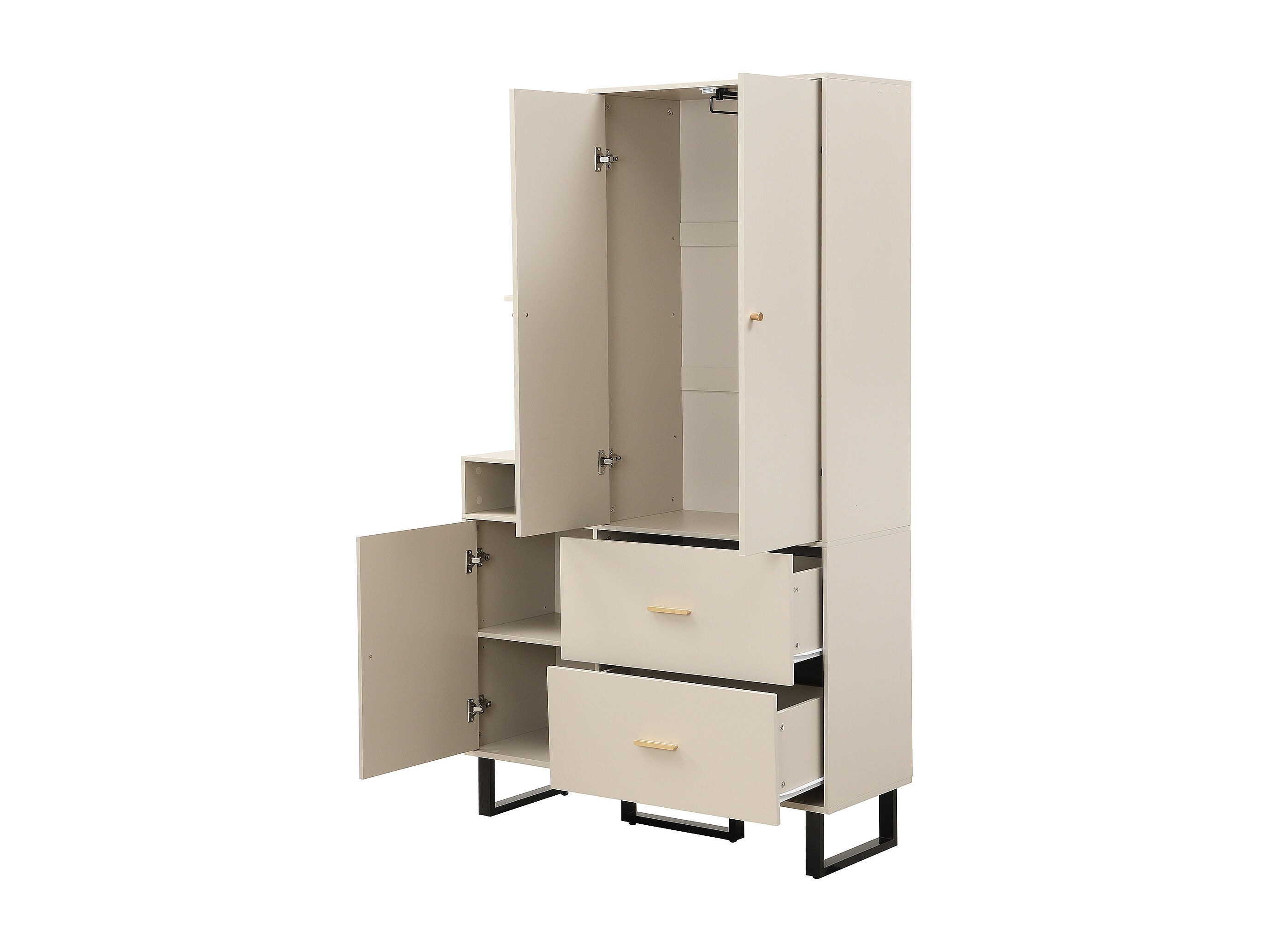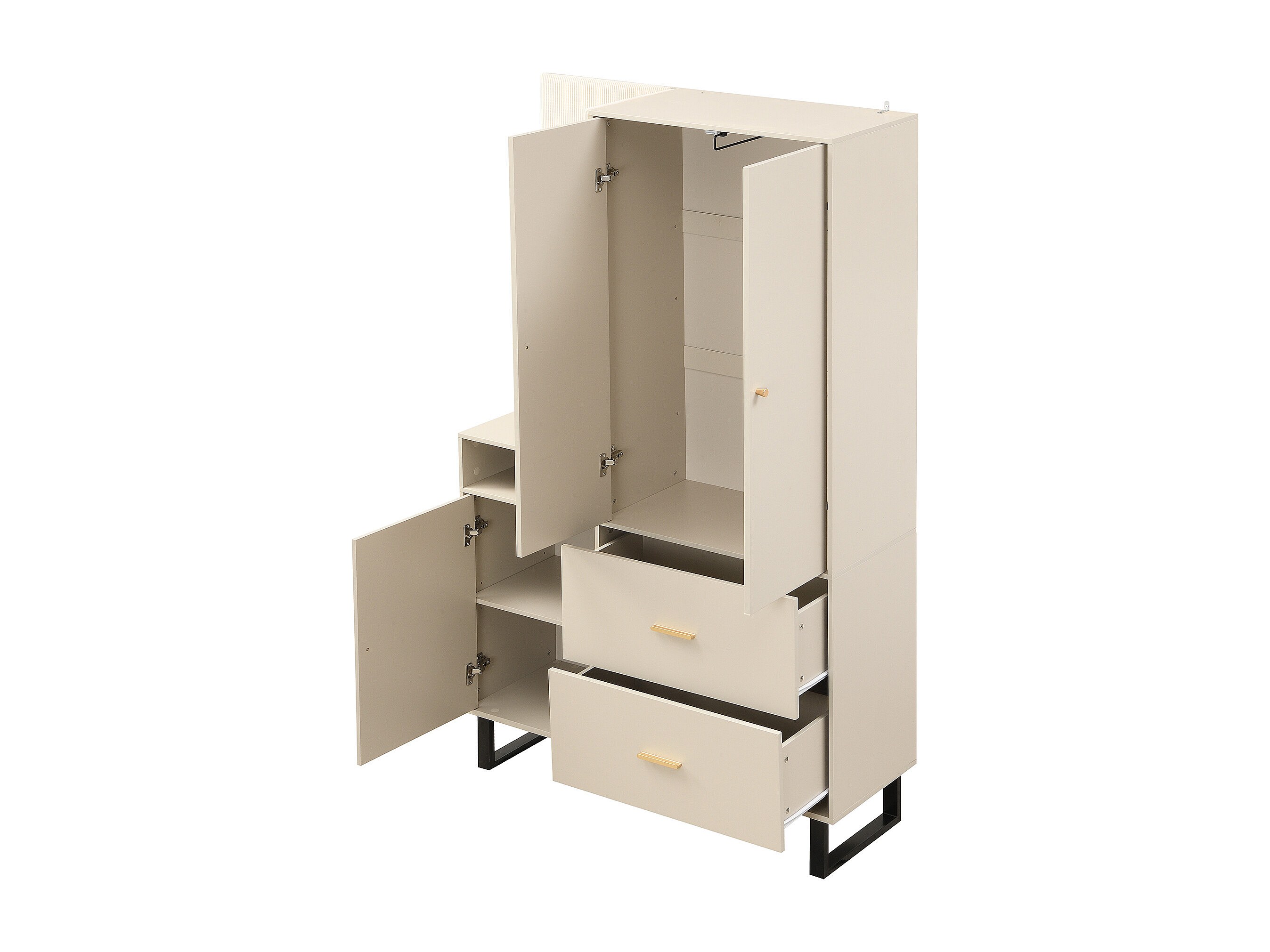 Beigefarbene Garderobe – Kleiderschrank mit 2 Schubladen und 3 Türen – offene Aufbewahrung