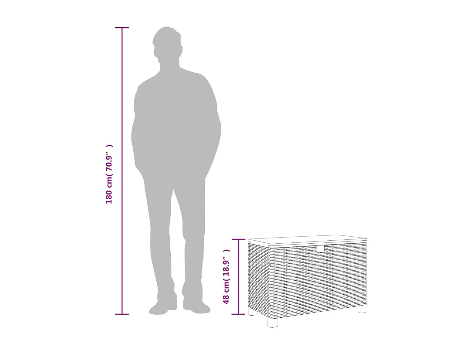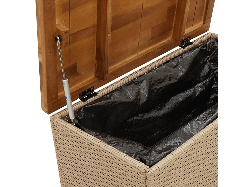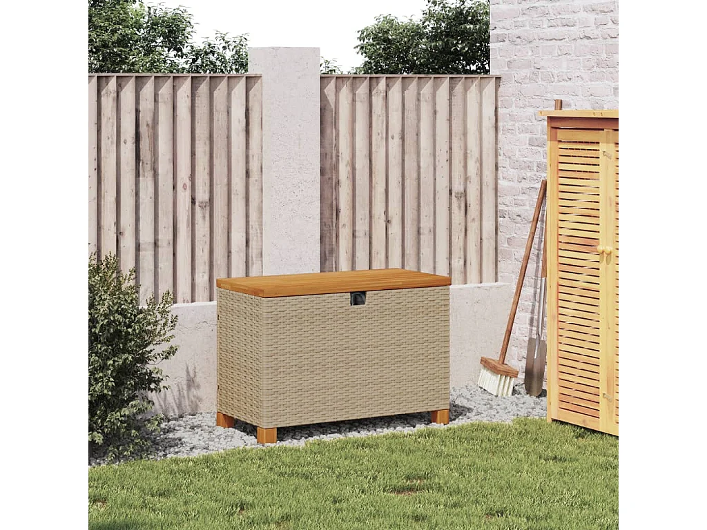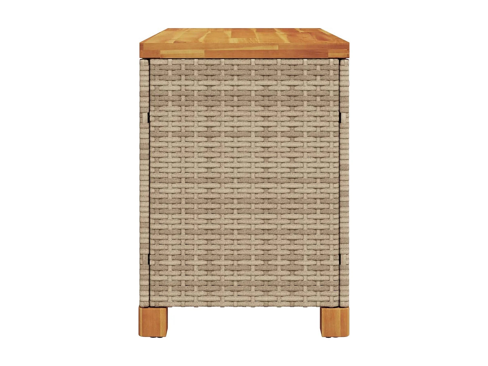 Beigefarbene Garten-Aufbewahrungsbox aus geflochtenem Akazienholzharz