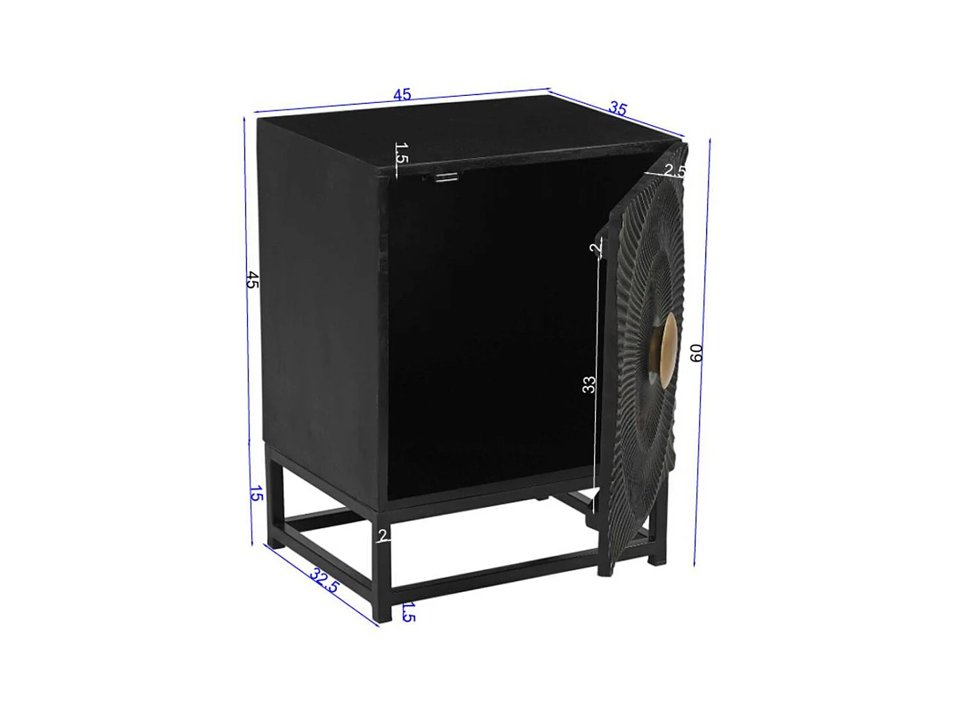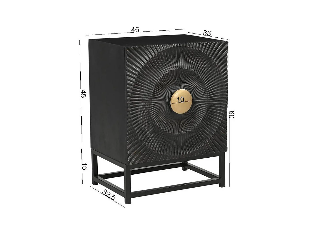 Beistellschrank Nachtschrank in Schwarz und Goldfarben