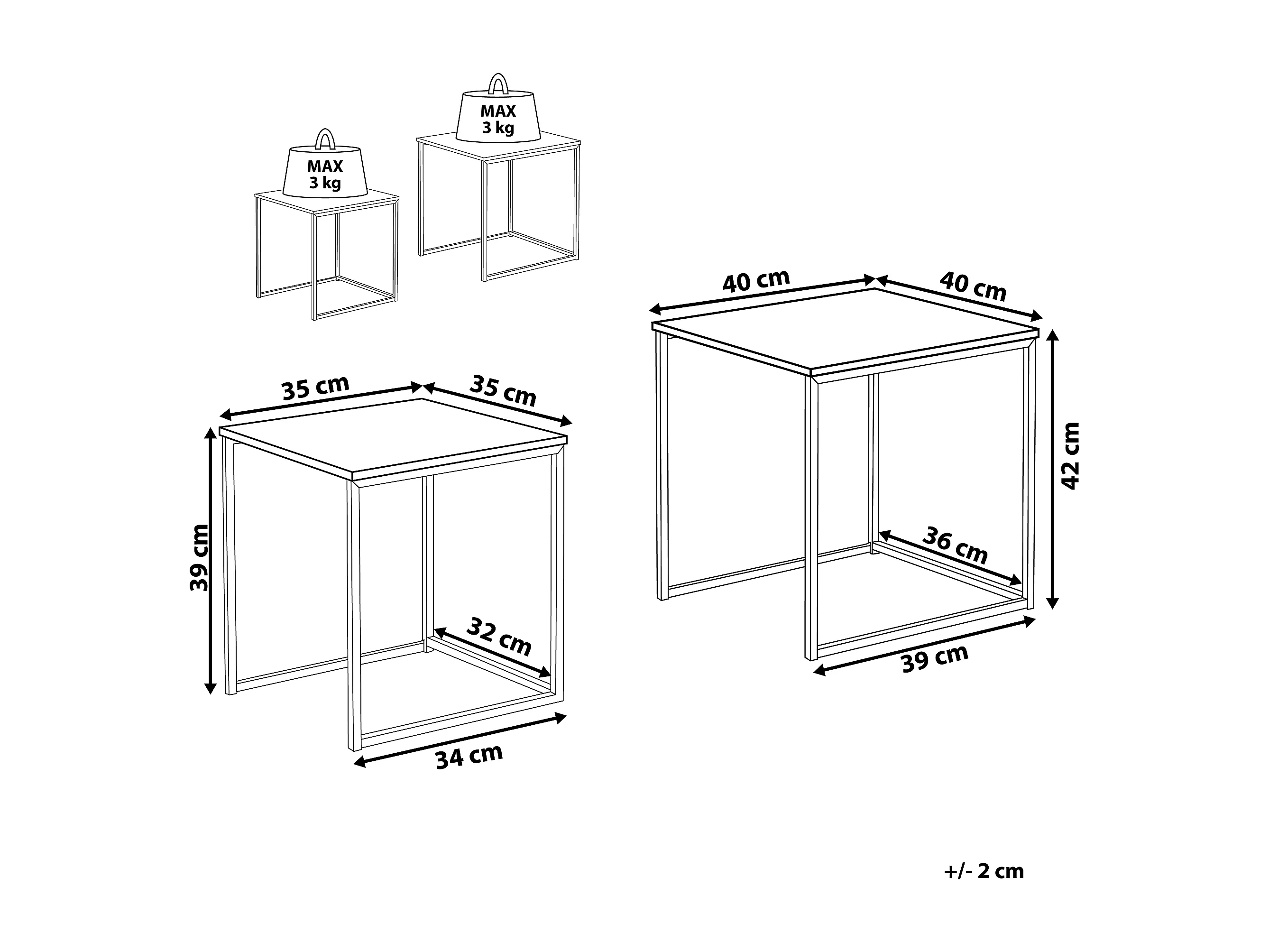 Beistelltisch 2er Set Couchtische quadratisch Loft Design braun / schwarz Denny