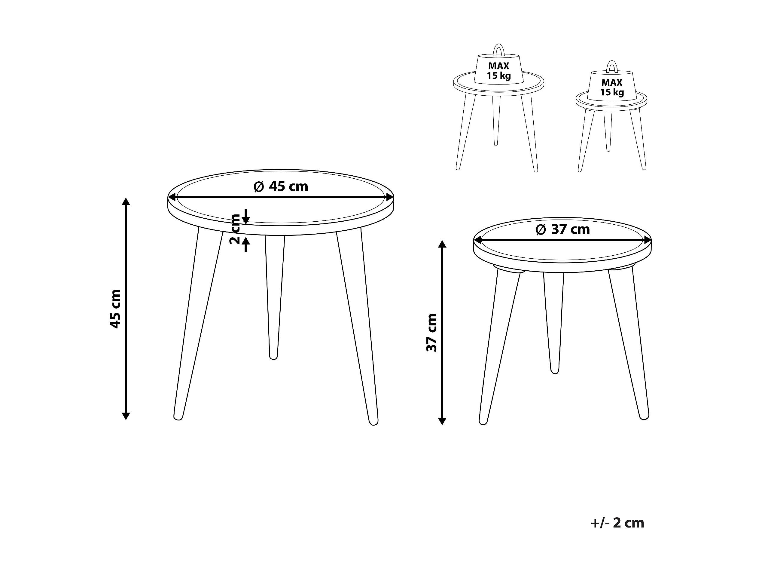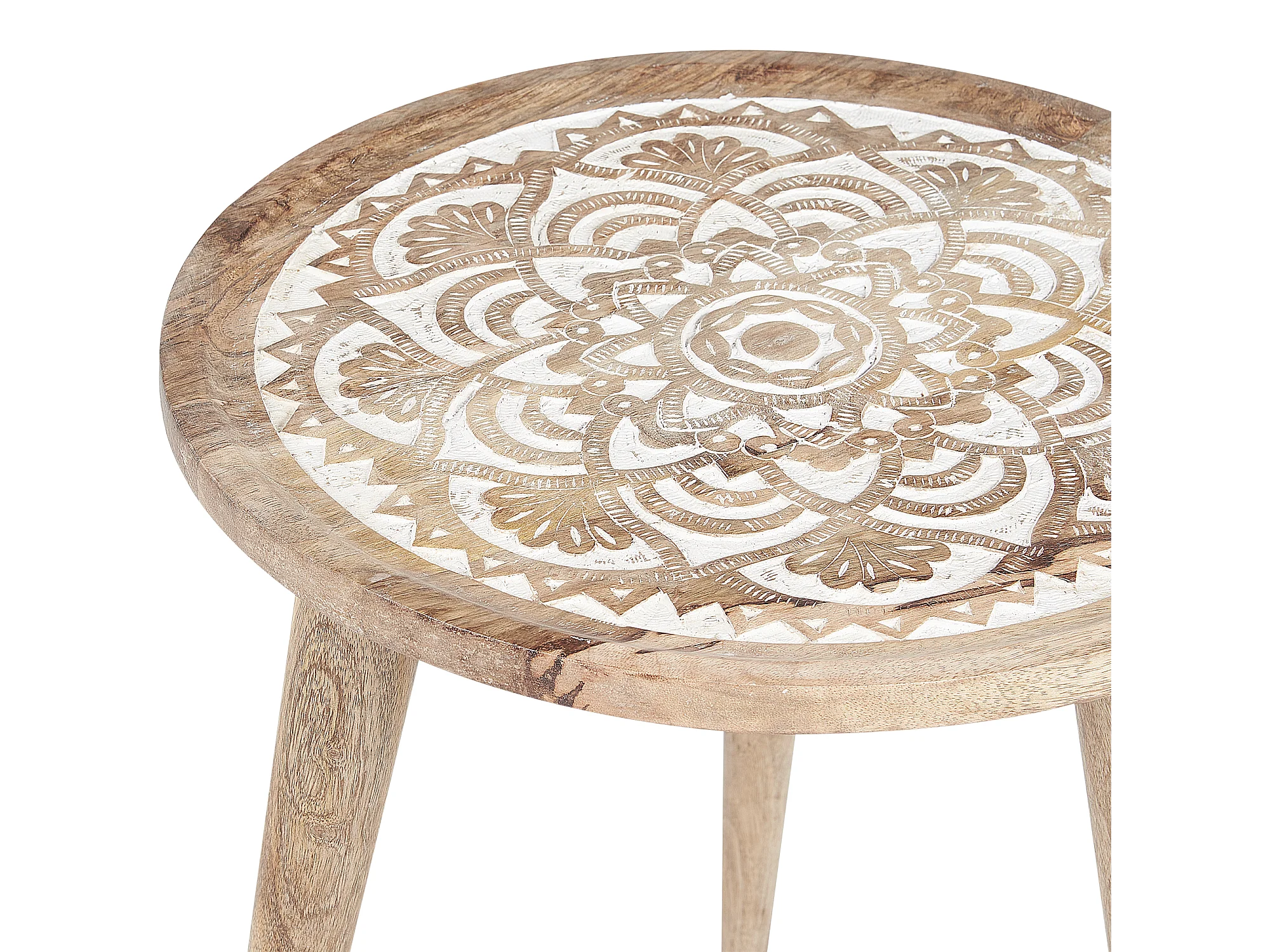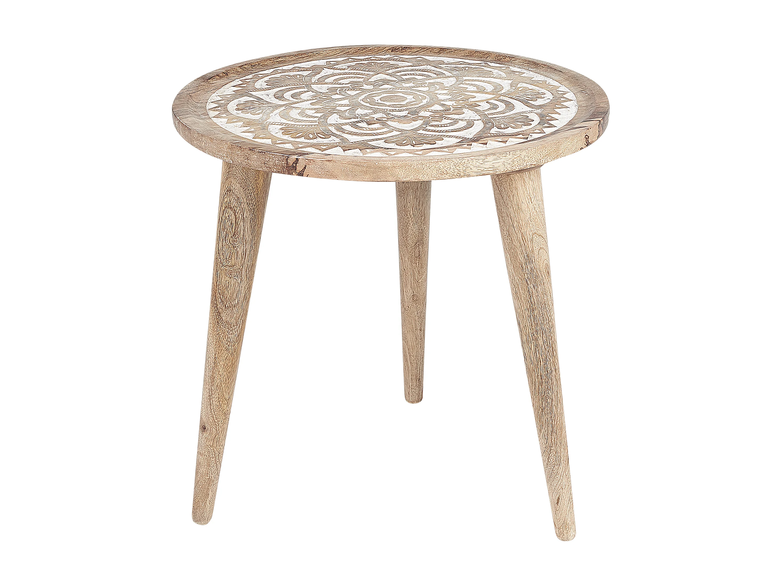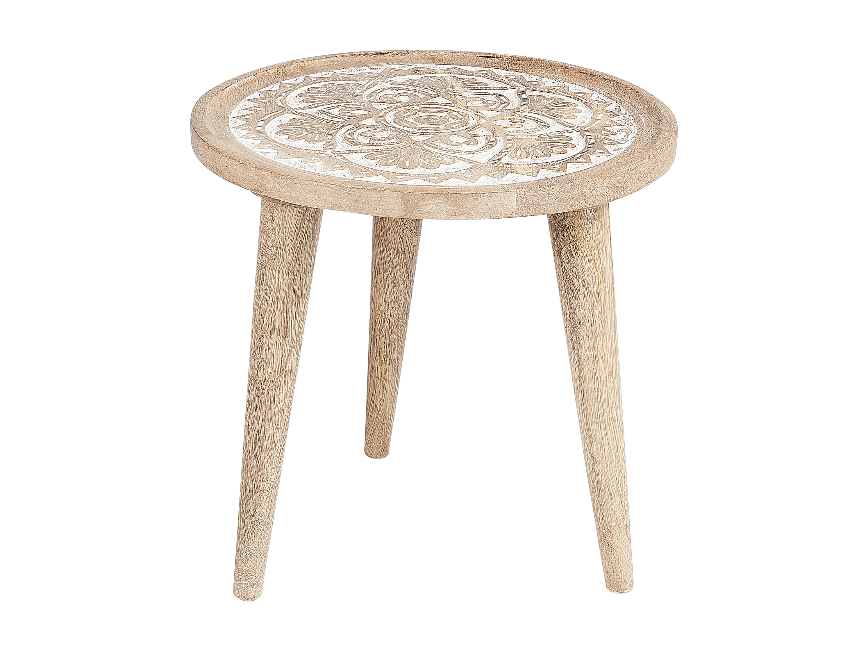 Beistelltisch 2er Set Mango Holz hellbraun / weiß rund dreibeinig Boho Sakita