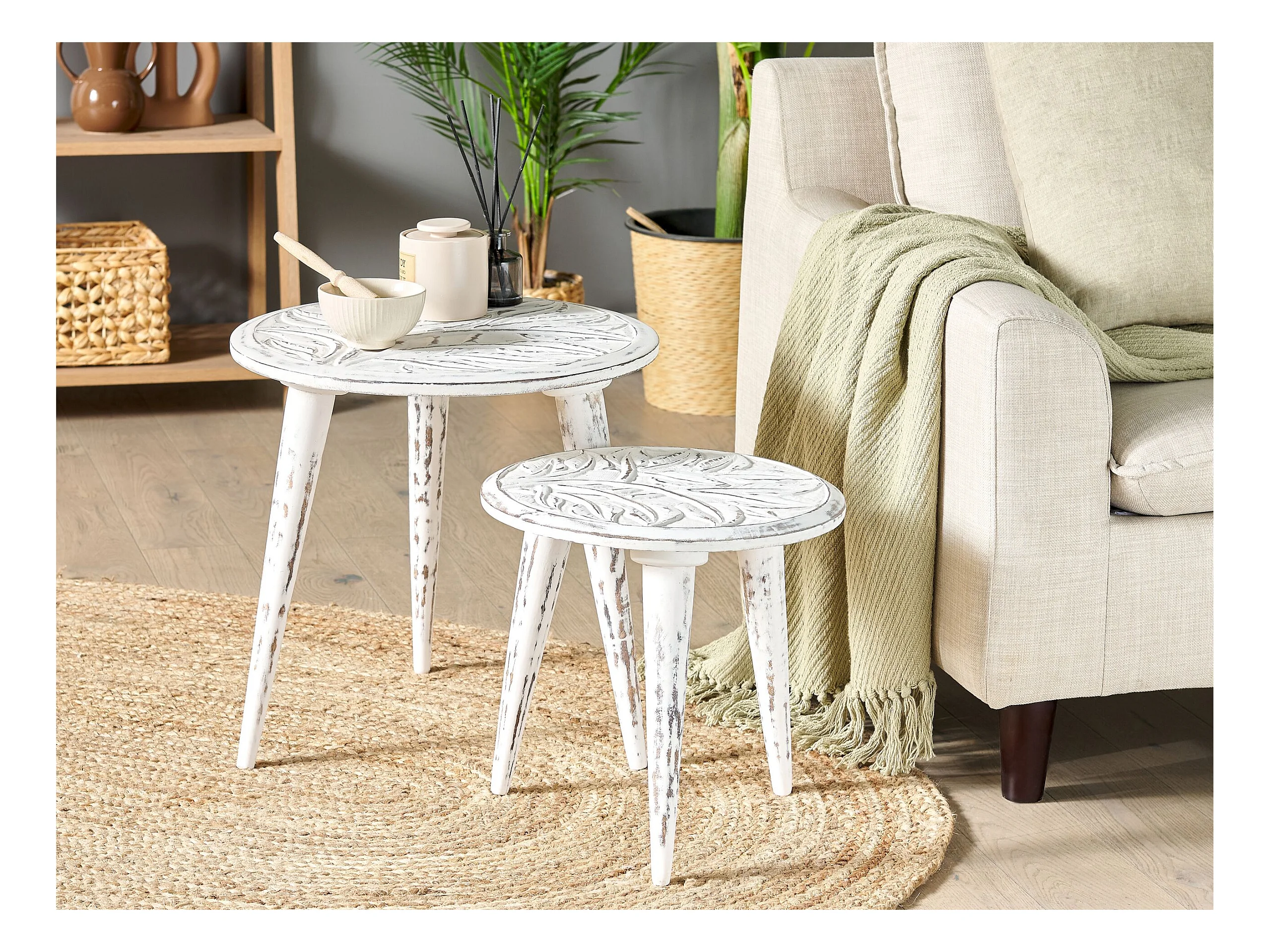 Beistelltisch 2er Set CHANDRA Mango Holz Weiss