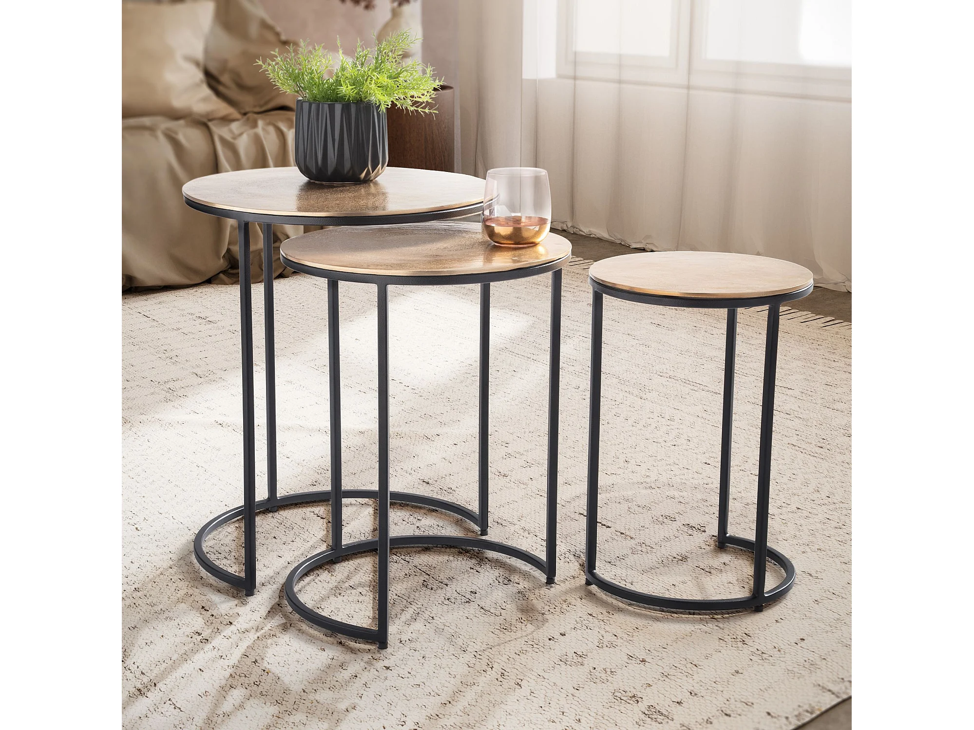 Beistelltisch 3er Set Aluminium Gold / Schwarz Design Satztisch Metall Rund, Wohnzimmertisch