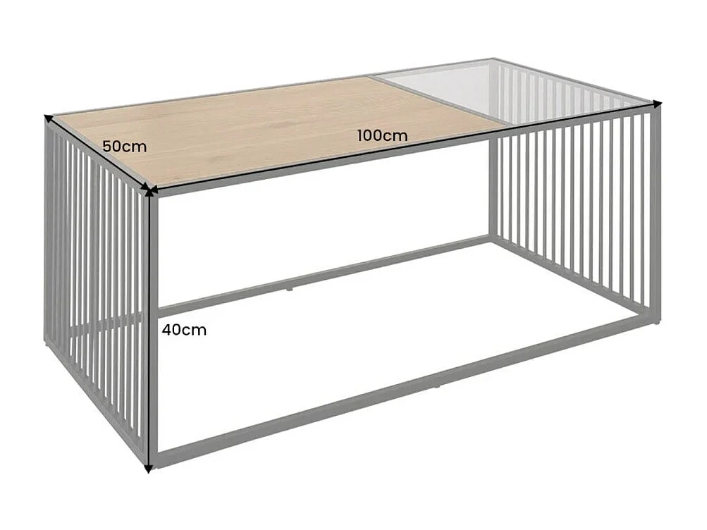 Beistelltisch ABITTA rechteckig 100 cm in hellem Eichenholz und Rauchglas – Modern mit gemischter Holz- und Glasplatte