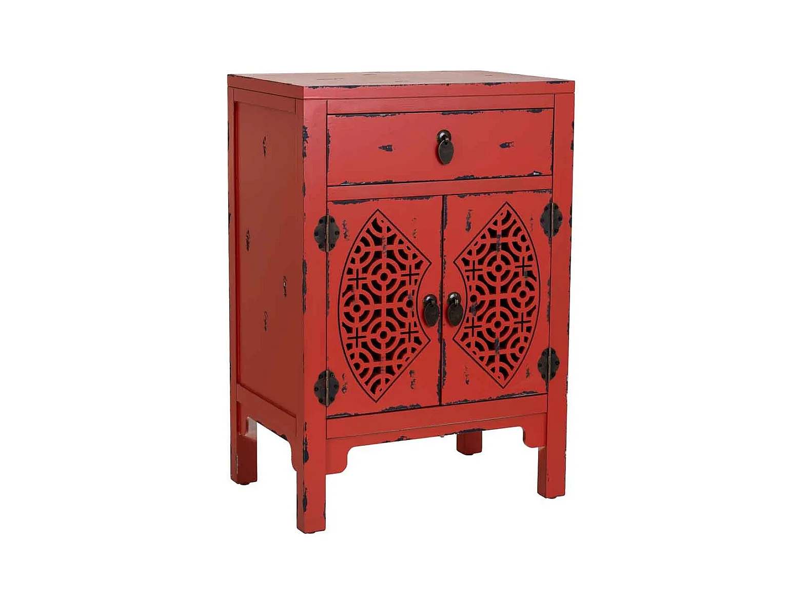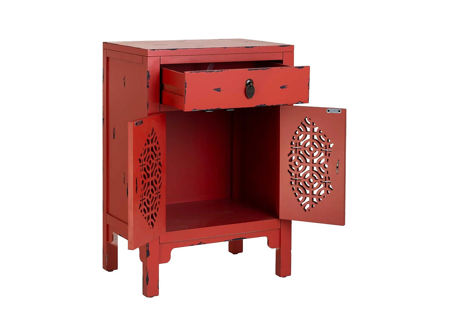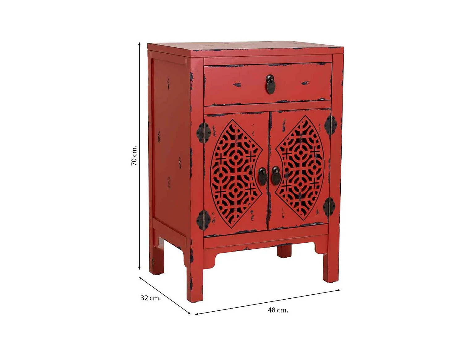 Beistelltisch aus Holz, Rot lackiert, 48x32x70h cm