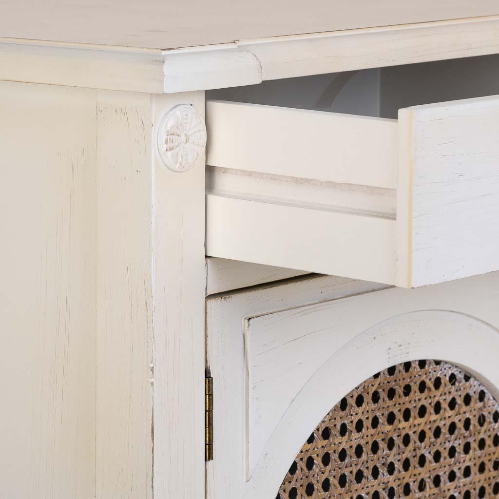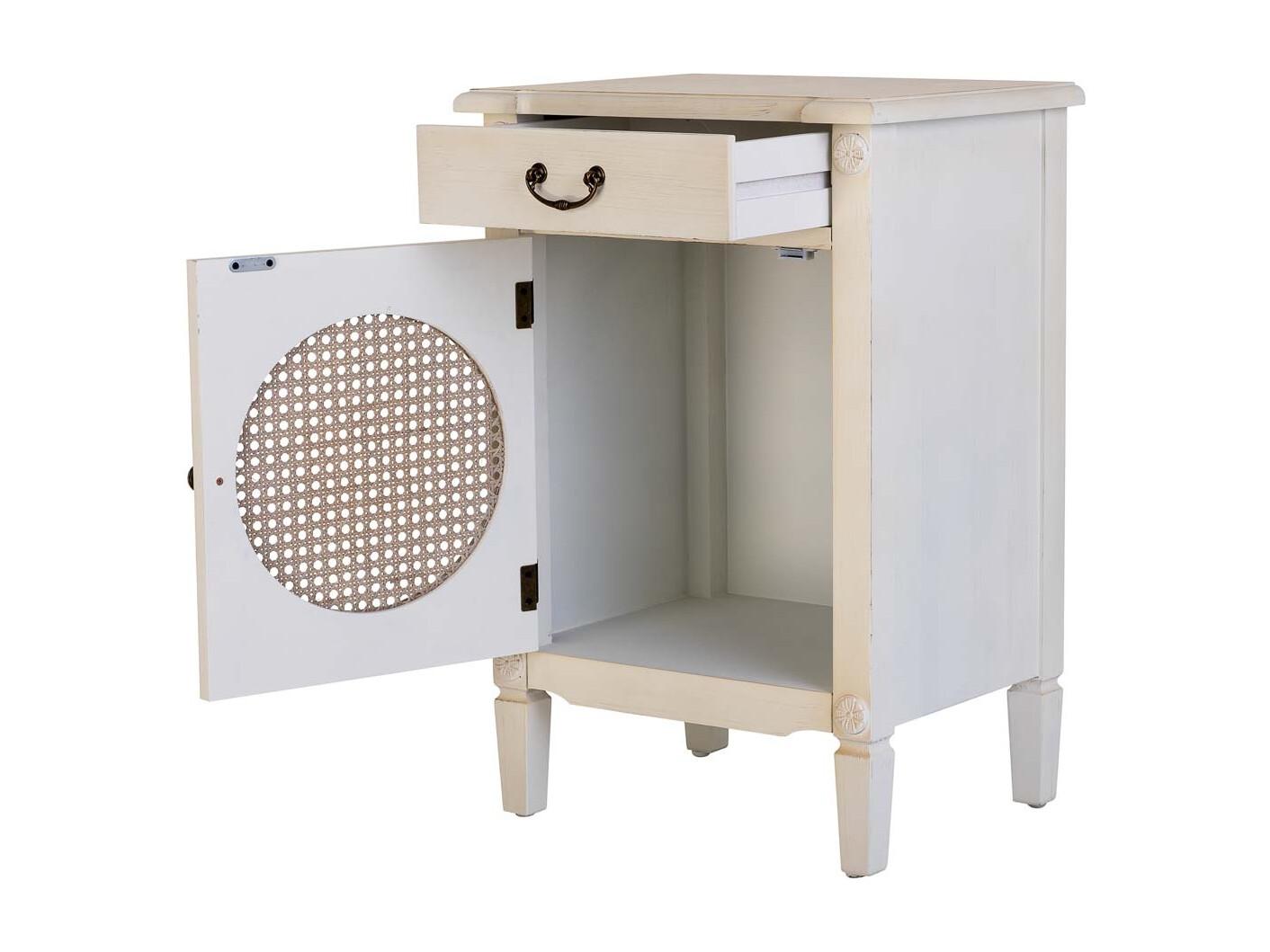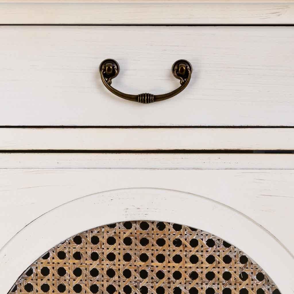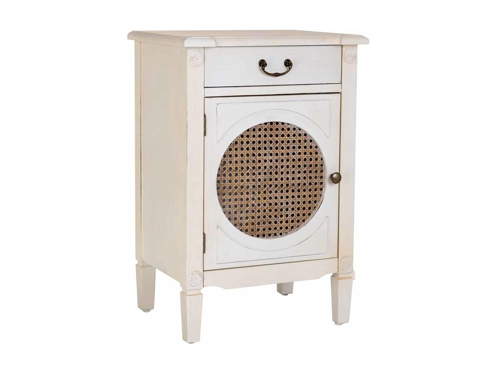 Beistelltisch aus Holz, Weiß lackiert mit Rattan, 46x36x68h cm