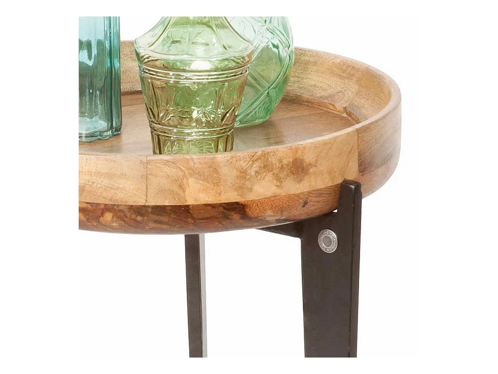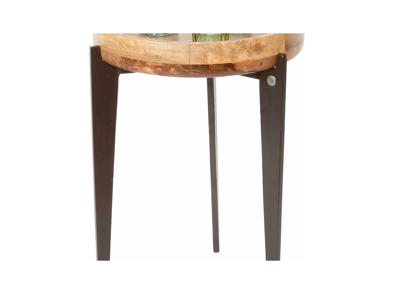 Beistelltisch aus Mangobaum Massivholz und Metall Tablettfunktion