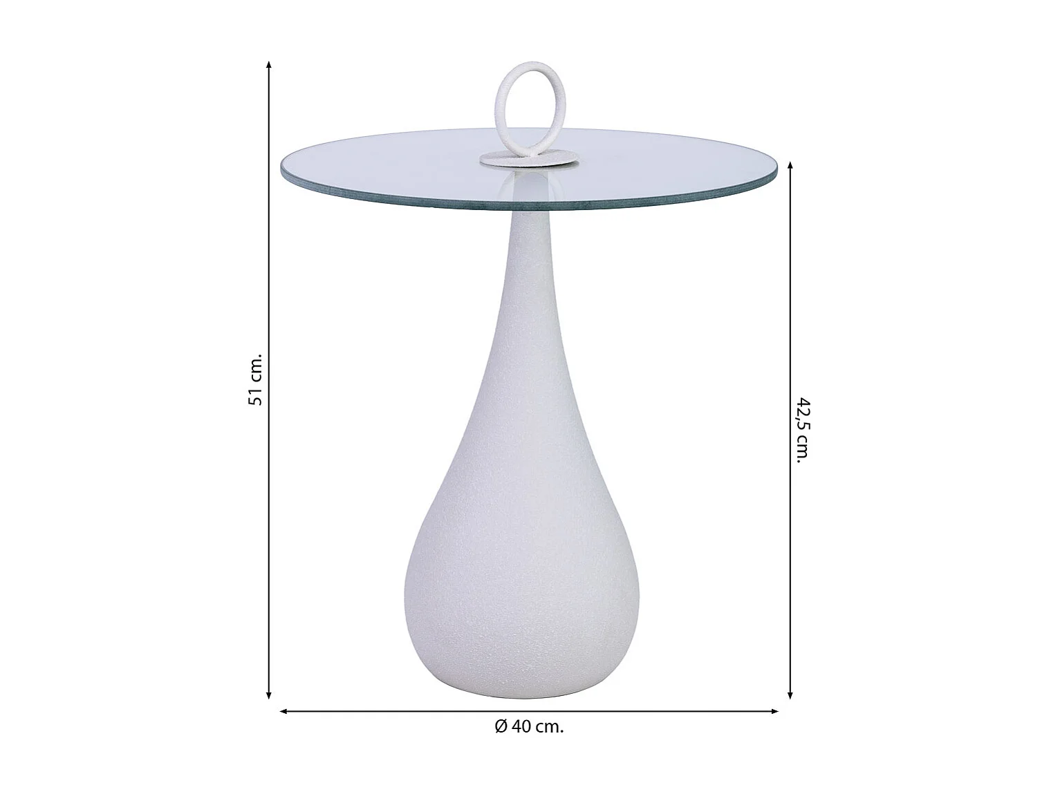Beistelltisch aus Metall und Glas 40x40x42,5/51h cm Weiß