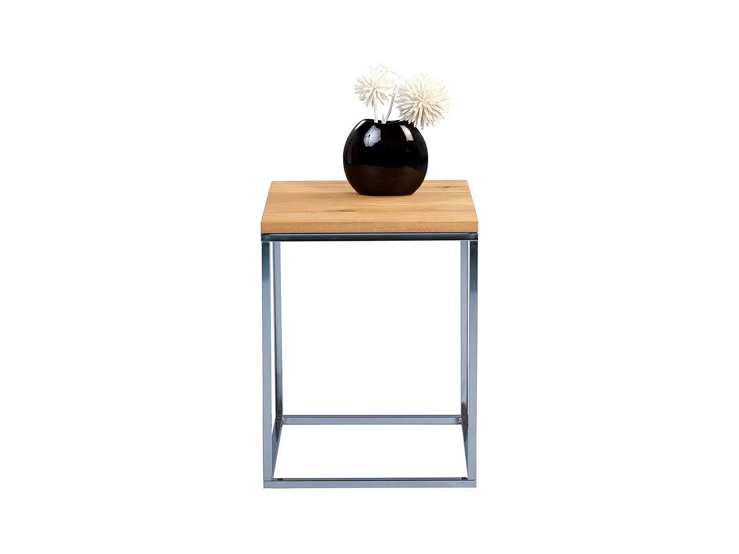 Beistelltisch aus Wildeiche Massivholz Metall verchromt