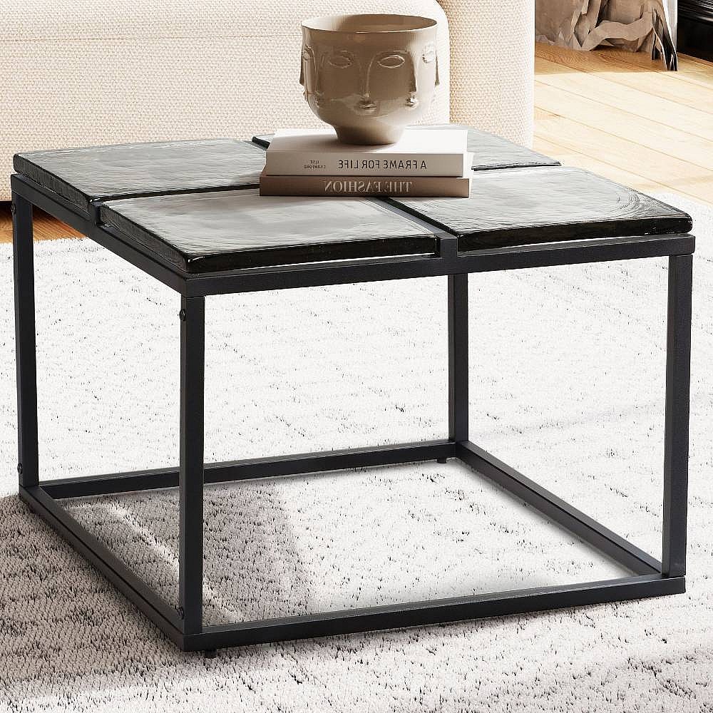 Beistelltisch Couchtisch in quadratischer Form mit Glasplatte
