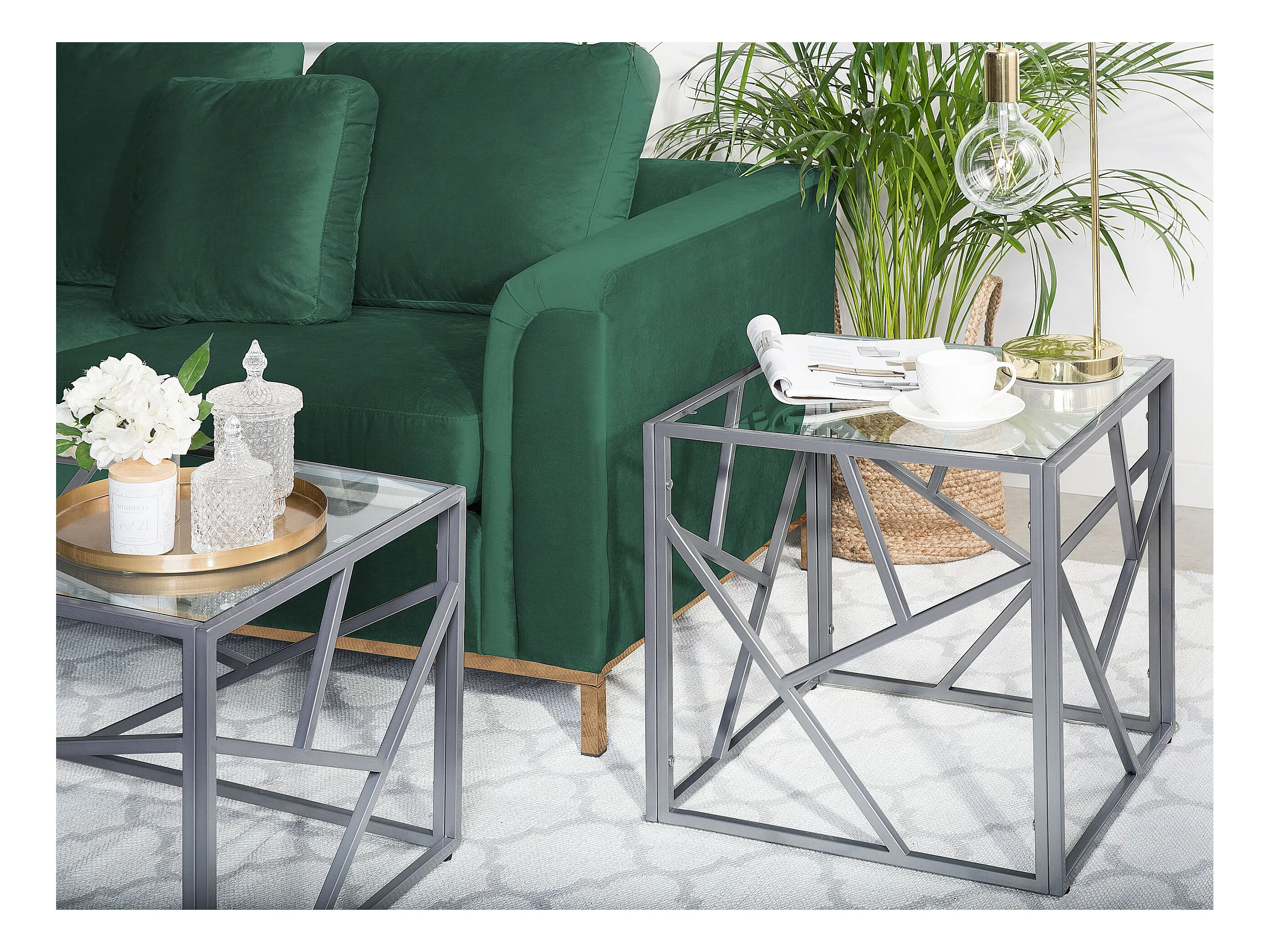 Quadratischer Beistelltisch industrielles Design Glas silber Orland