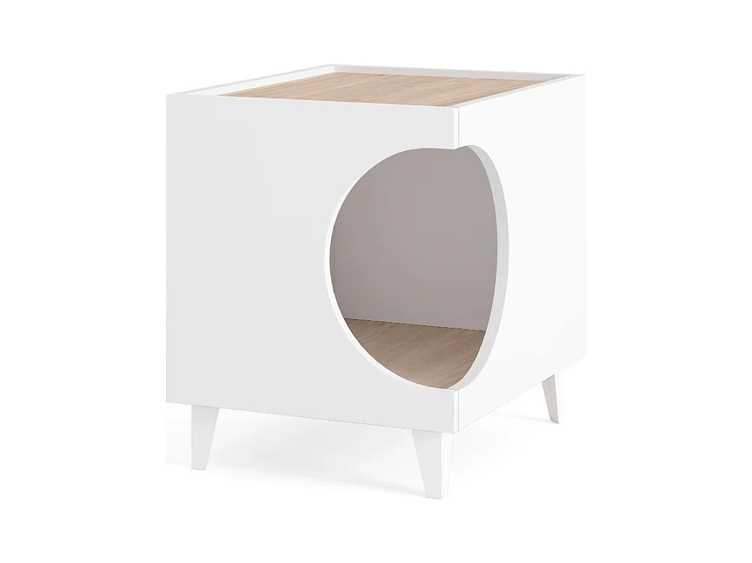 Beistelltisch - Hunde und Katzenhaus ELLIE - Weiß/Eiche - Seiteneingang, 1 Tür - Hunde- und Katzenschrank, für Katzenklo - 46x37x49cm