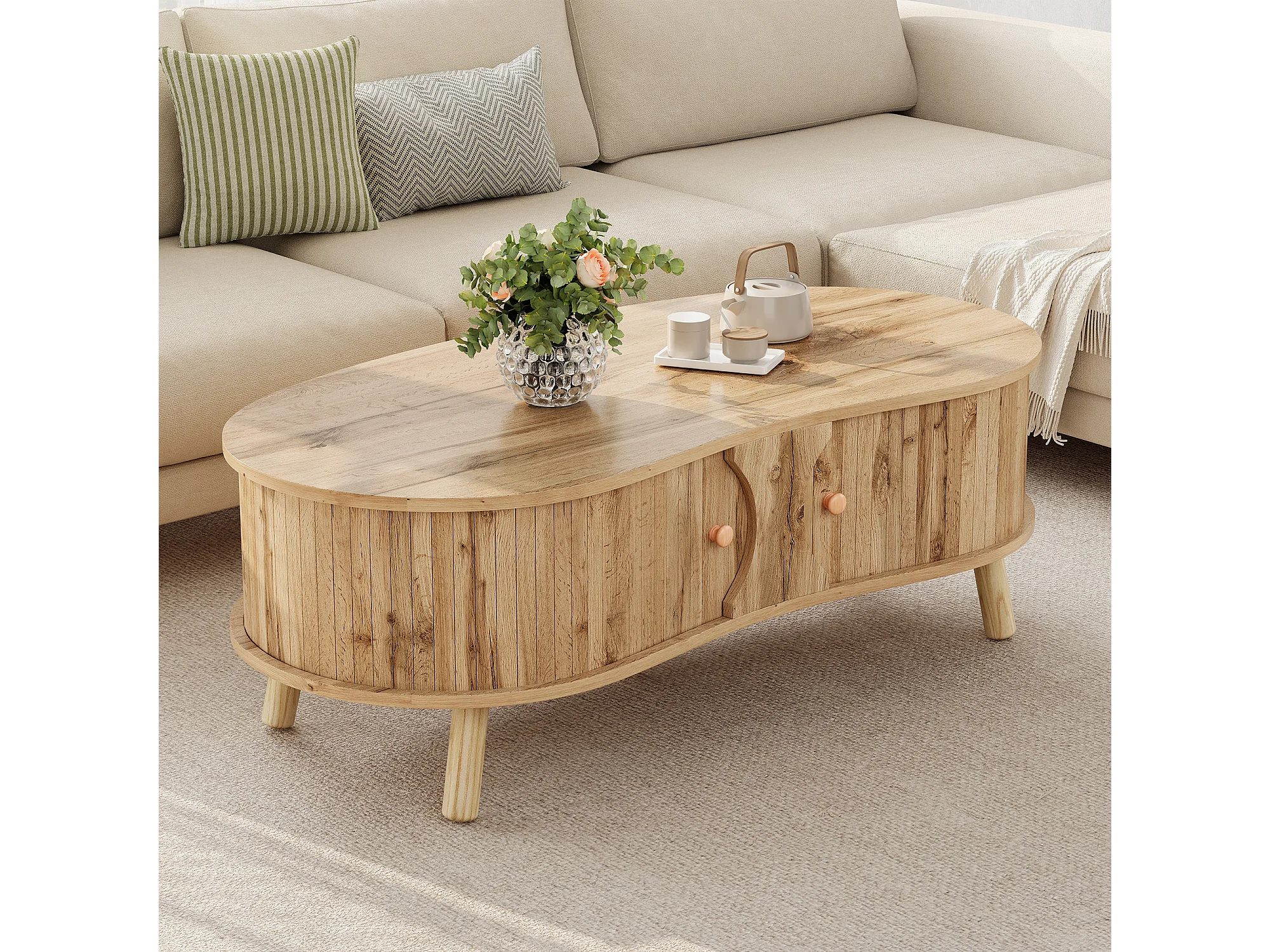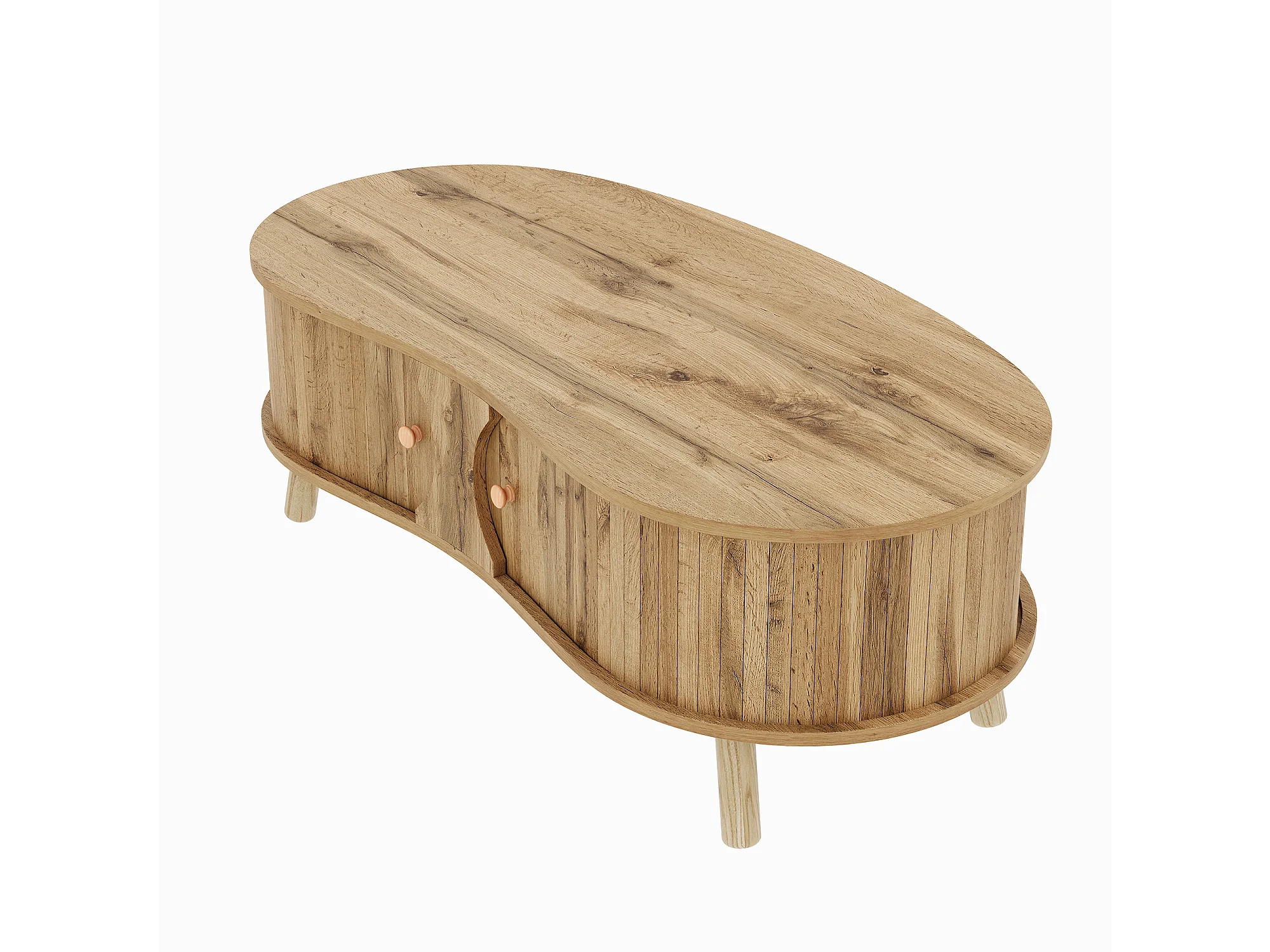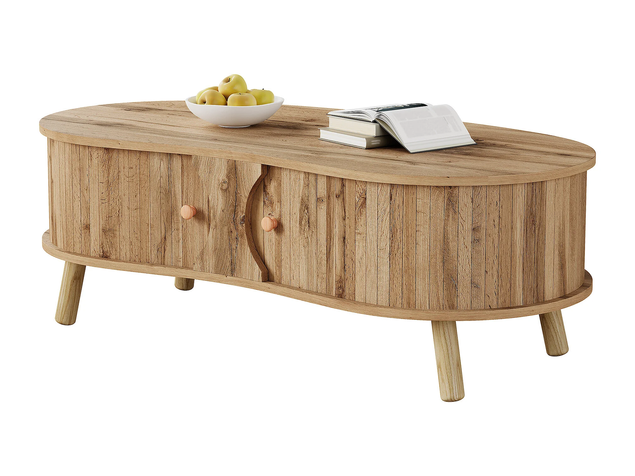 Beistelltisch in Erbsenform 108x50x37 cm - 2 Schiebetüren - Holzoptik - Massivholzfüße - MDF - Natur